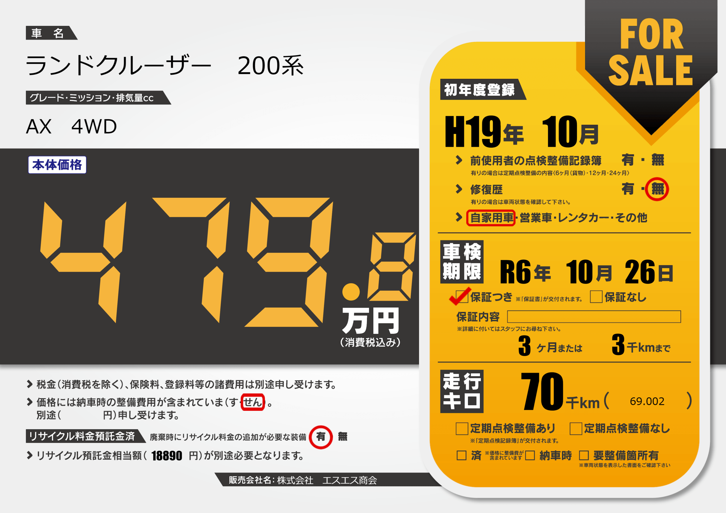 | 車検制限 | R6年 10月 26日 | ||