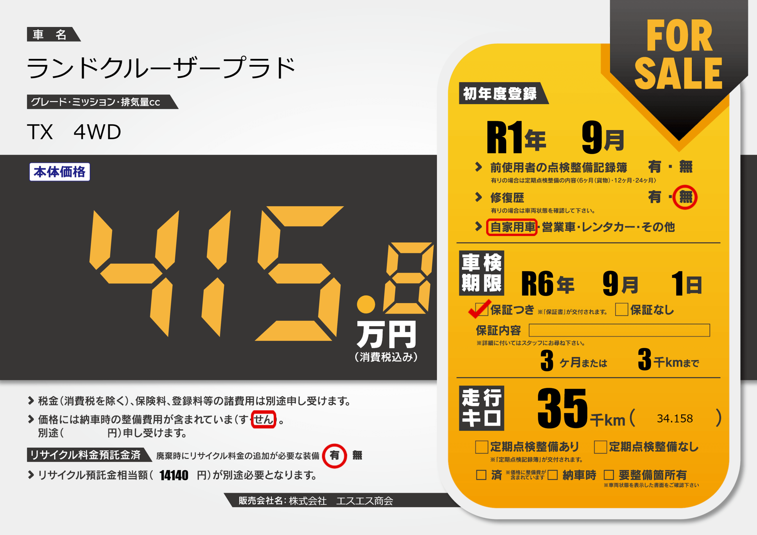 | 車名 | ランドクルーザープラド | グレード ミッション 排気量 |