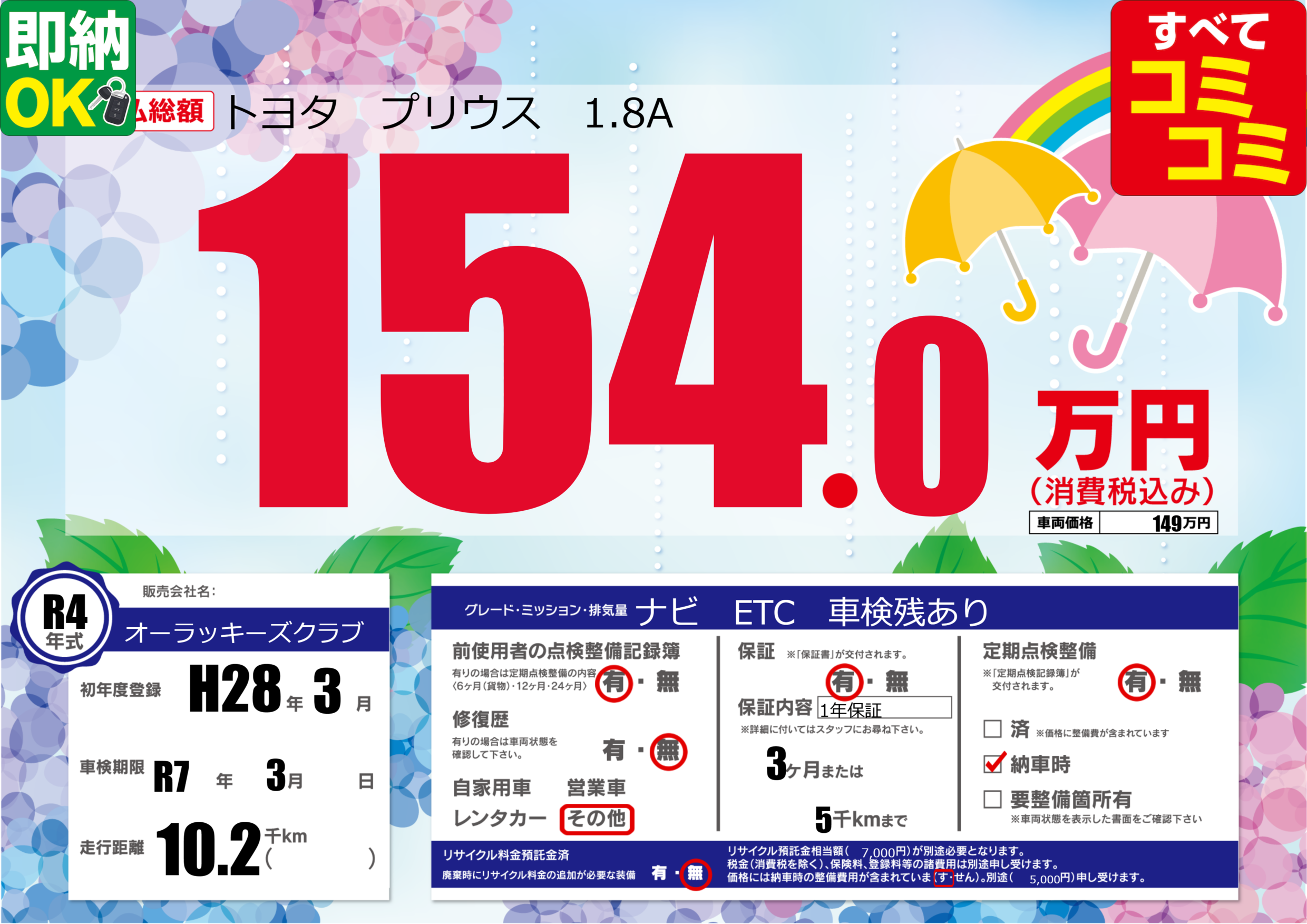 | 車検制限 | R7年 3月 - 日 | ||