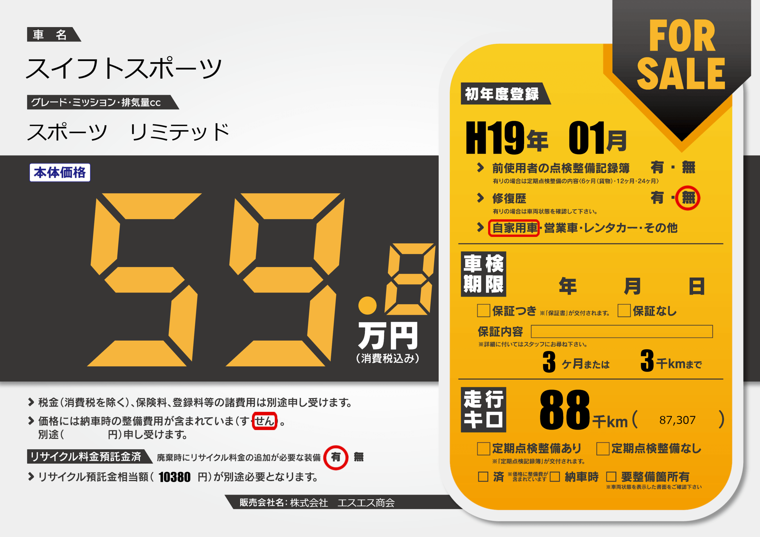 | 車検制限 | - 年 - 月 - 日 | ||