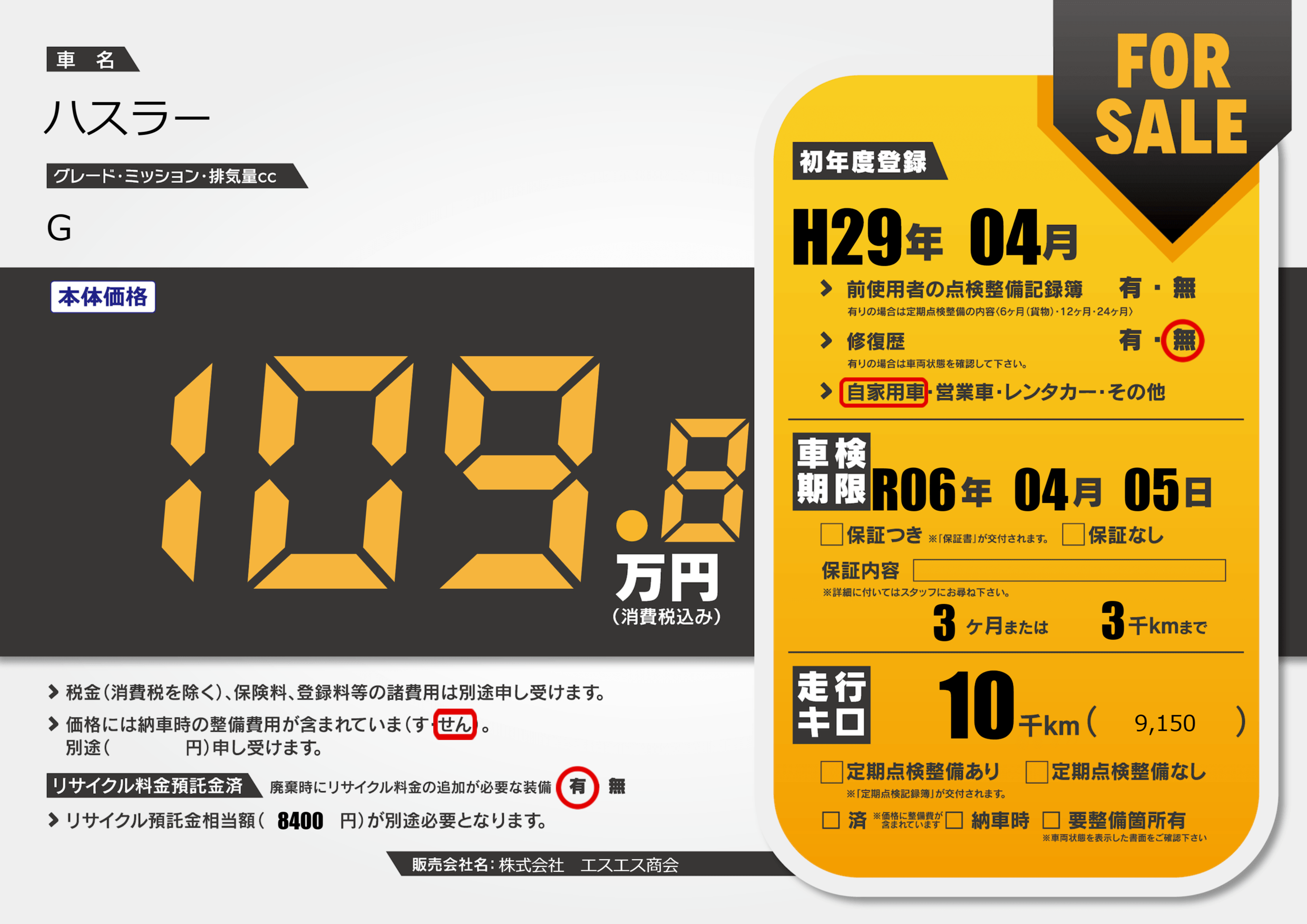 | 車名 | ハスラー | グレード ミッション 排気量 |