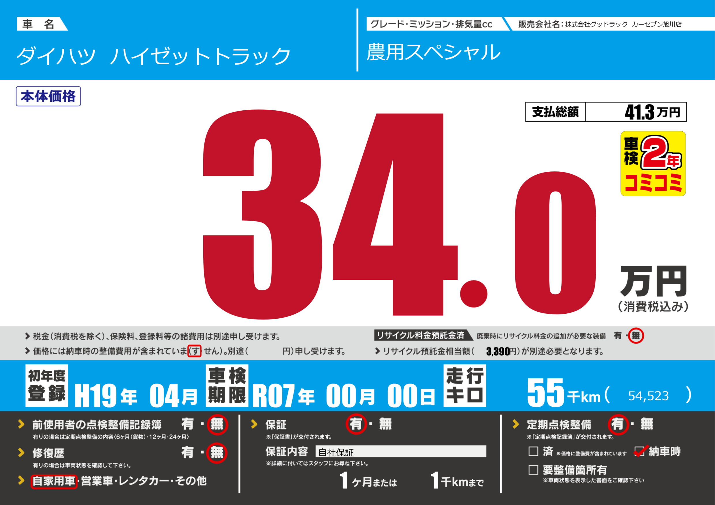 | 車検制限 | R07年 00月 00日 | ||