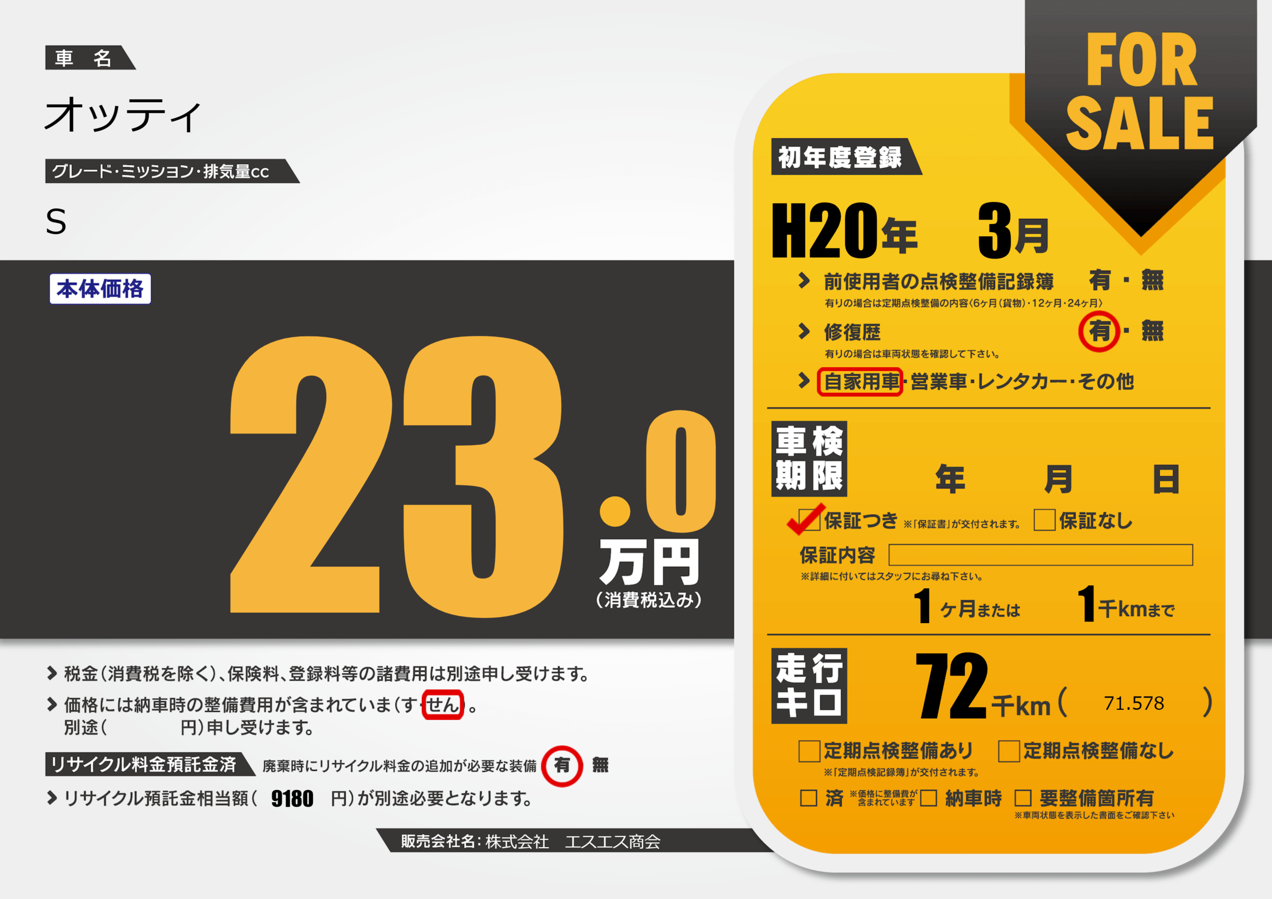 | 車名 | オッティ | グレード ミッション 排気量 |