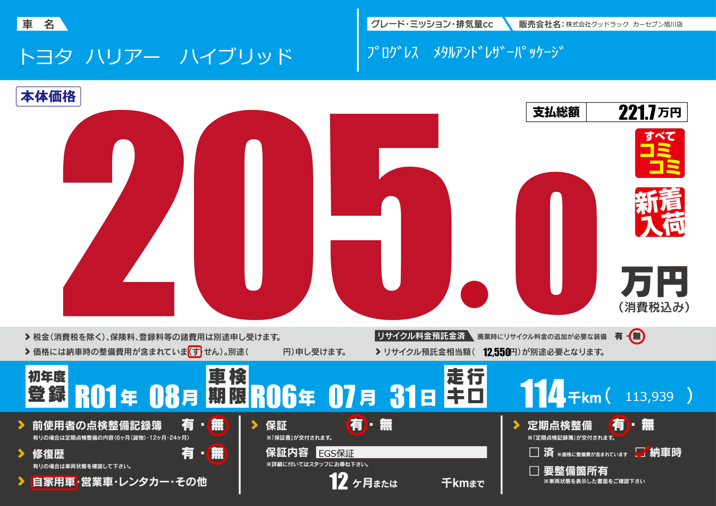 保証付き 保証内容(EGS保証) 12ヶ月または千km |