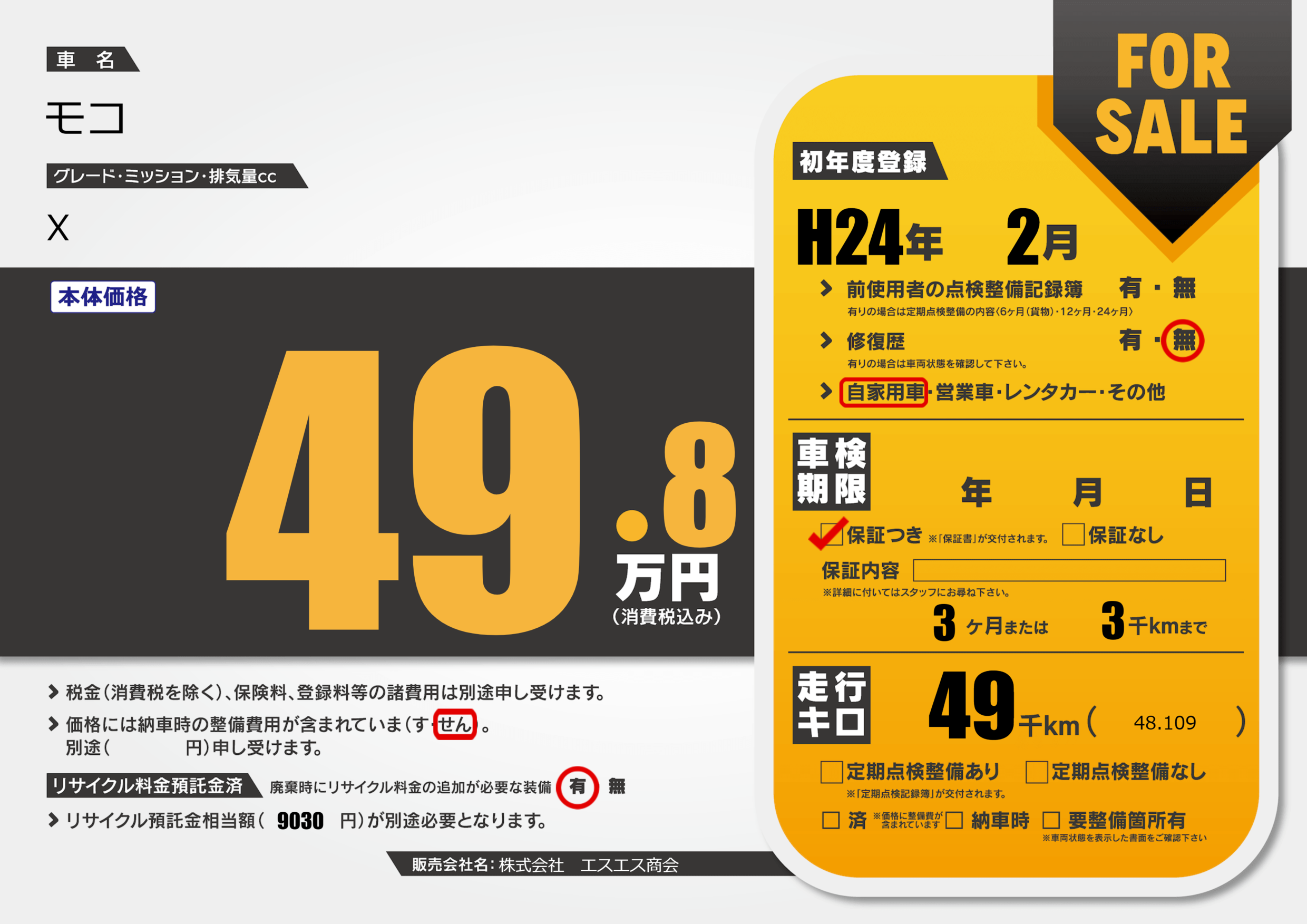 | 走行キロ | 4.9万km | 初年度登録 | H24年2月 |