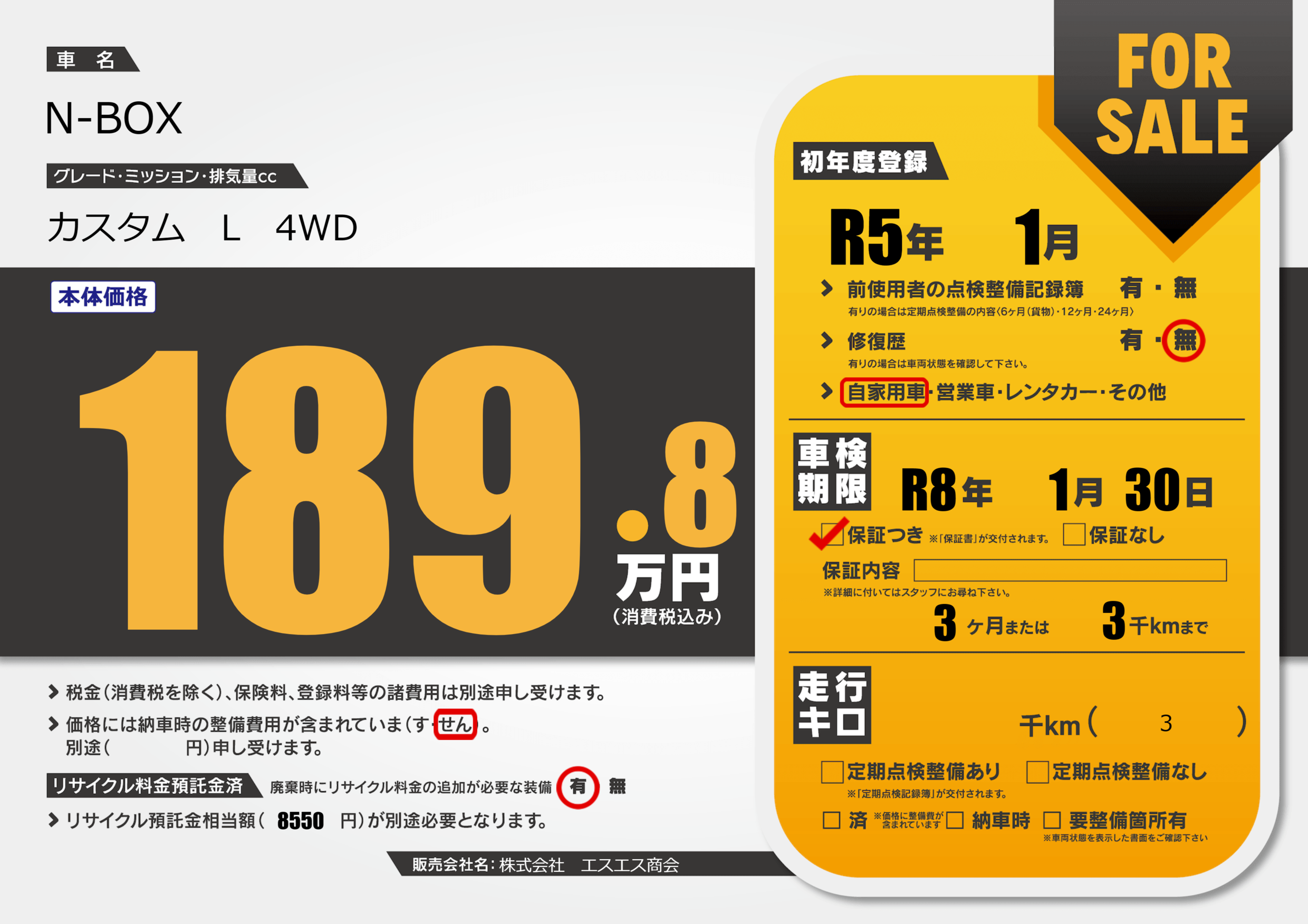 なし | 車検制限 | R8年1月30月 |