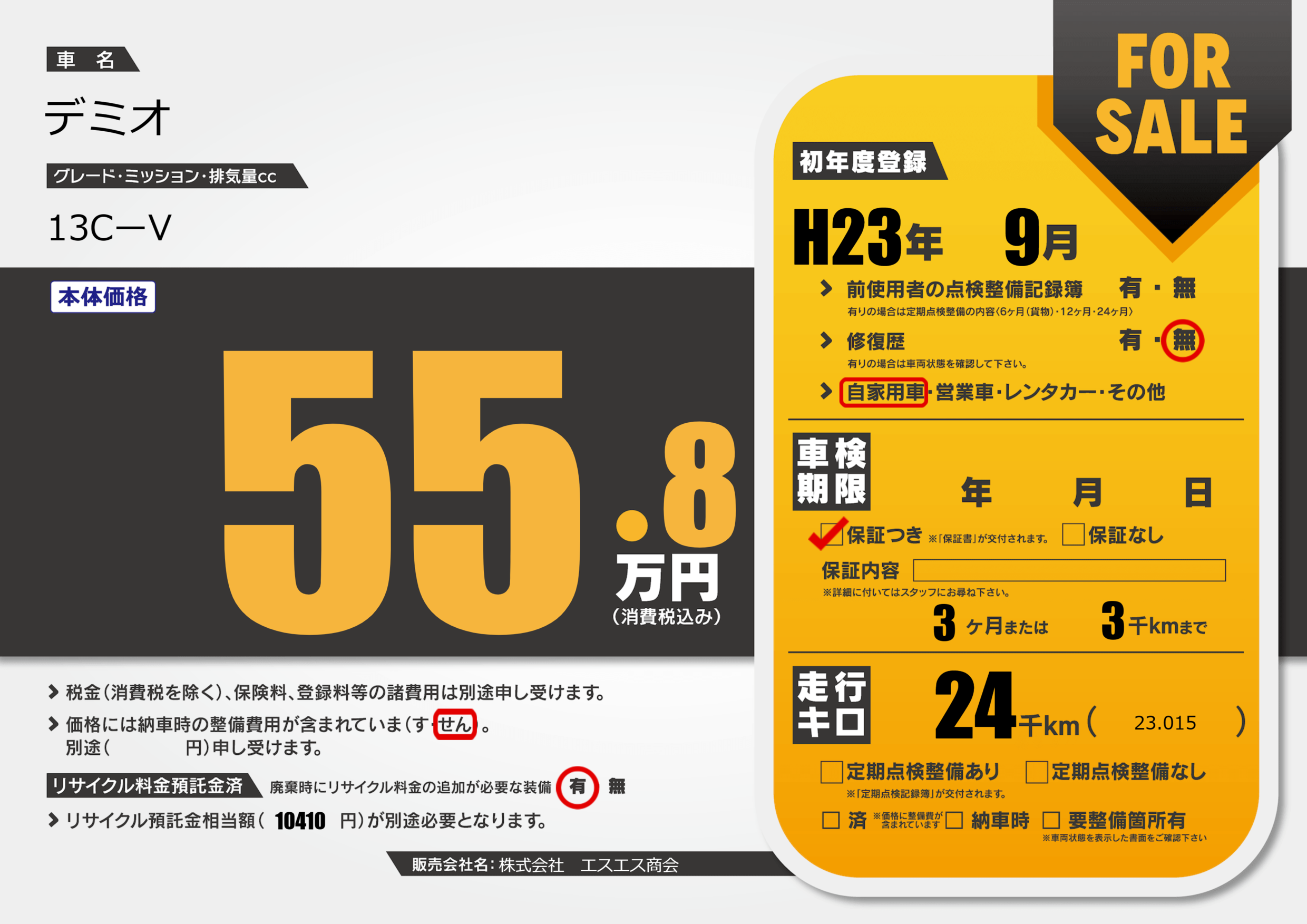 | 車名 | デミオ | グレード ミッション 排気量 |