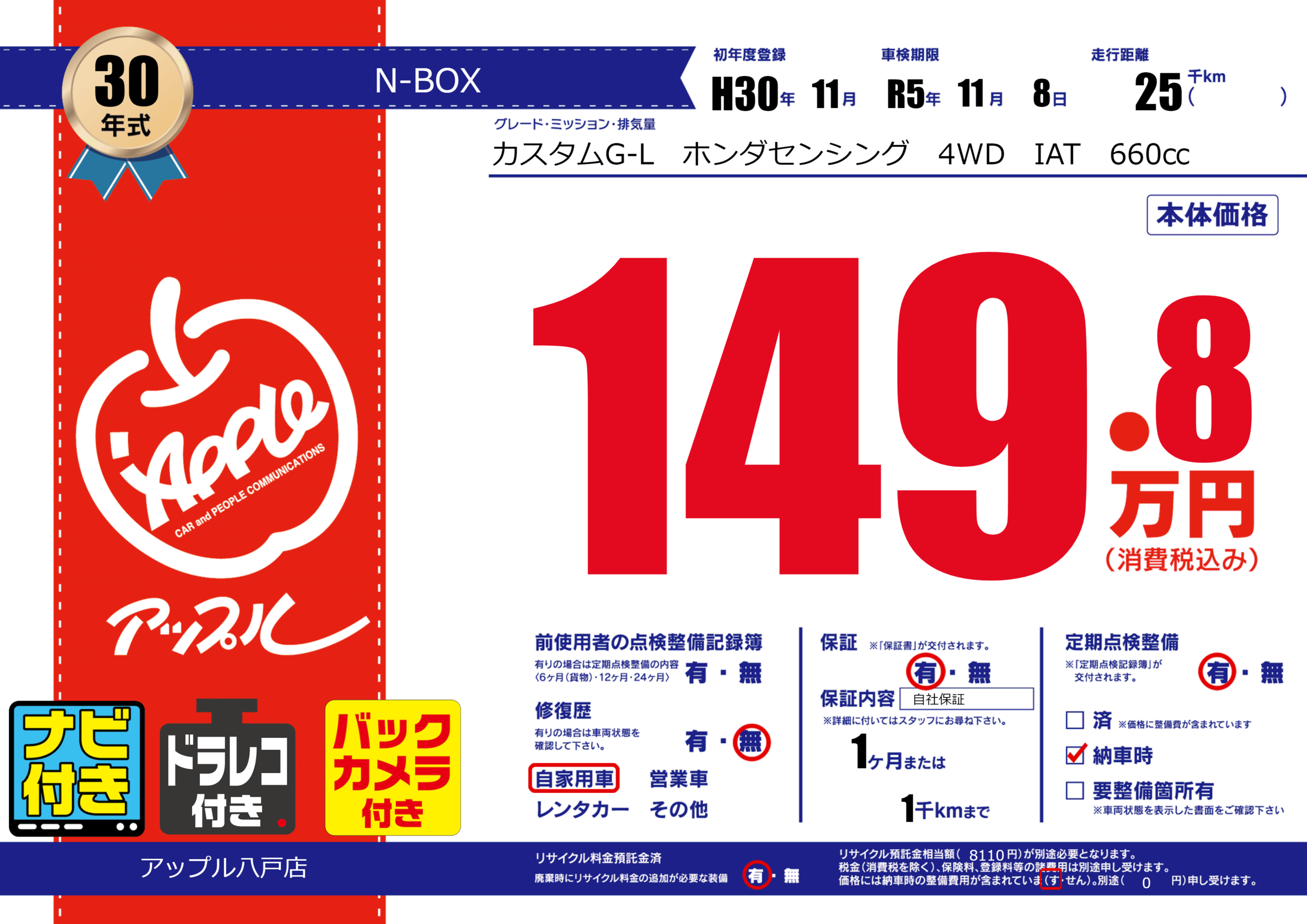 | 走行キロ | 2.5万km | 初年度登録 | H30年11月 |