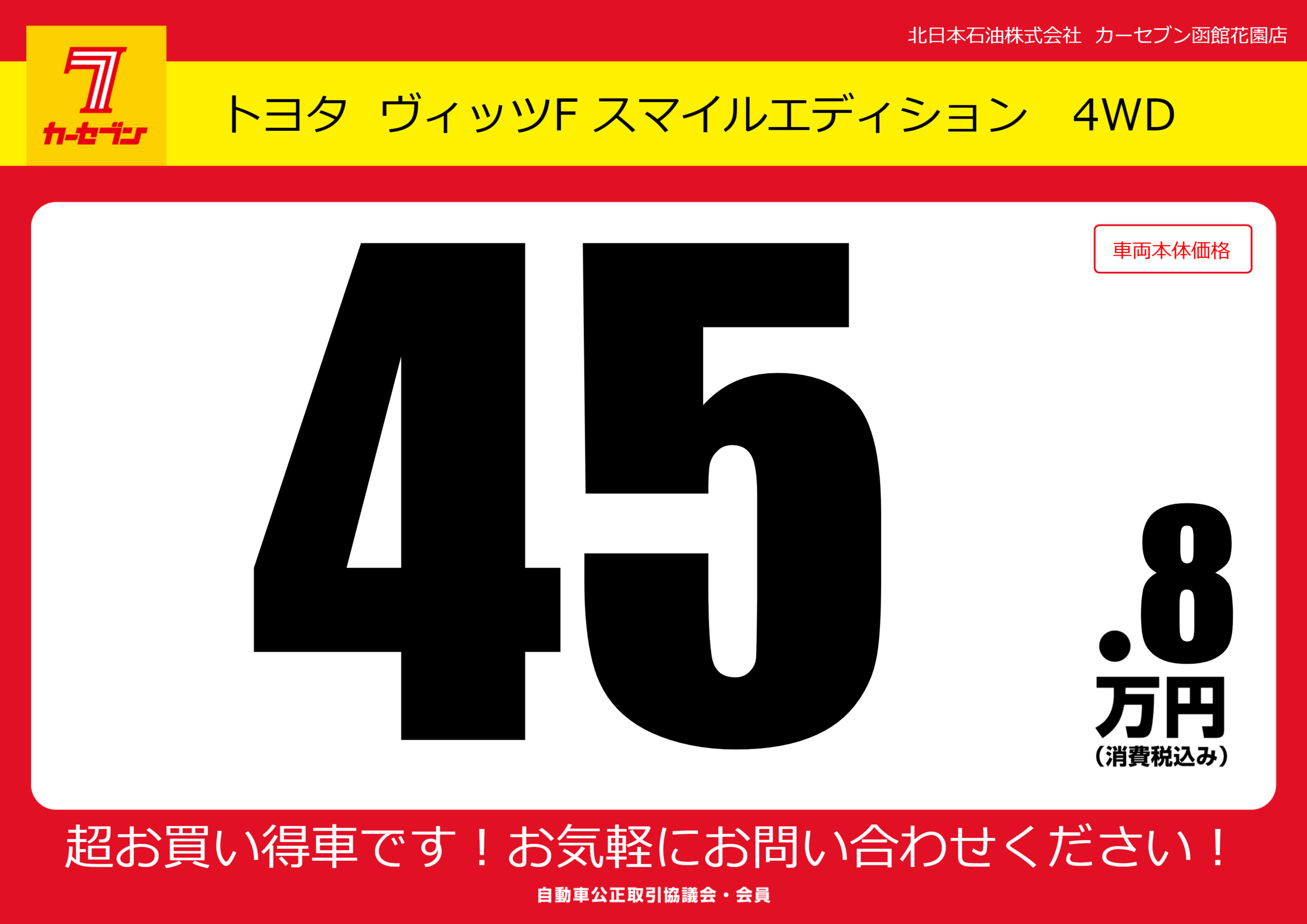 | 車名 | トヨタ ヴィッツF スマイルエディション 4WD | グレード ミッション 排気量 |