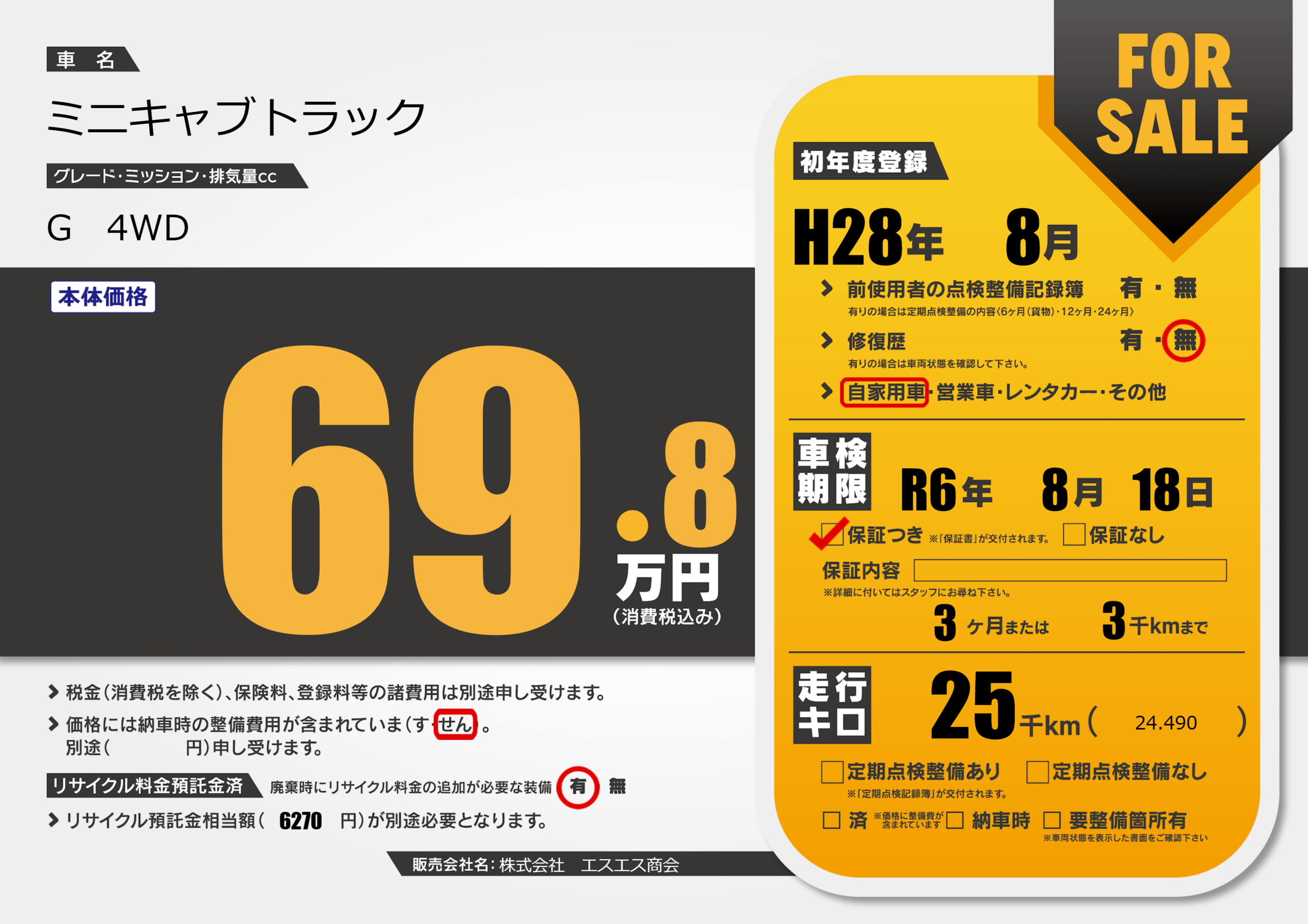 保証付き 保証内容(---) 3ヶ月または(3)千kmまで |