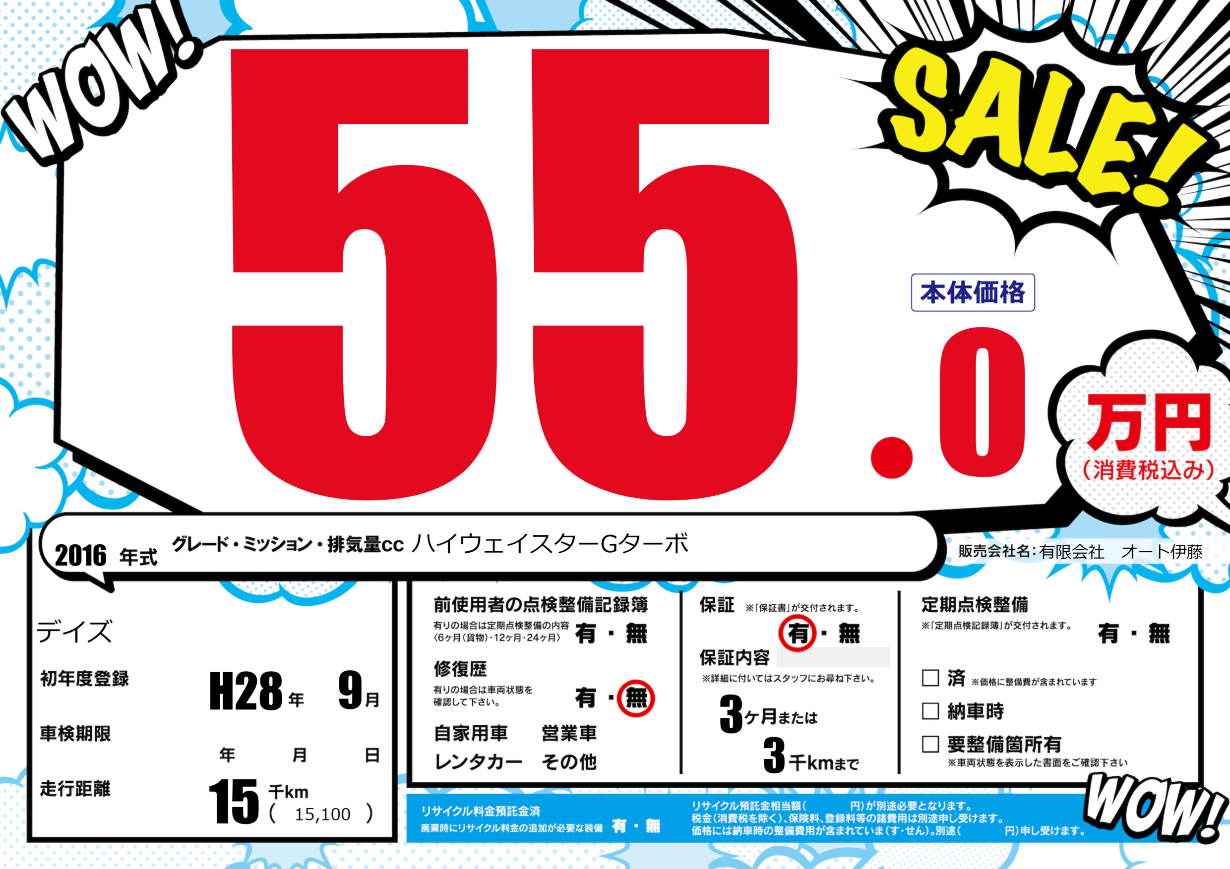 | 車名 | デイズ | グレード ミッション 排気量 |