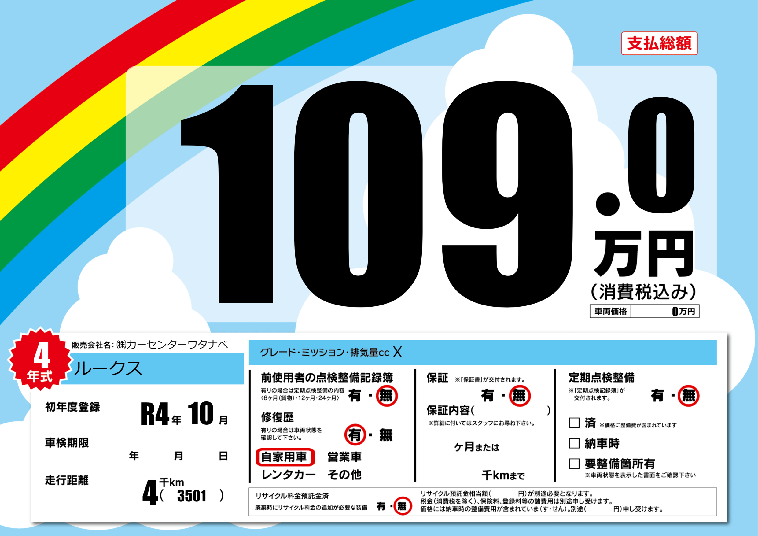 | 走行キロ | 0.4万km | 初年度登録 | R4年10月 |