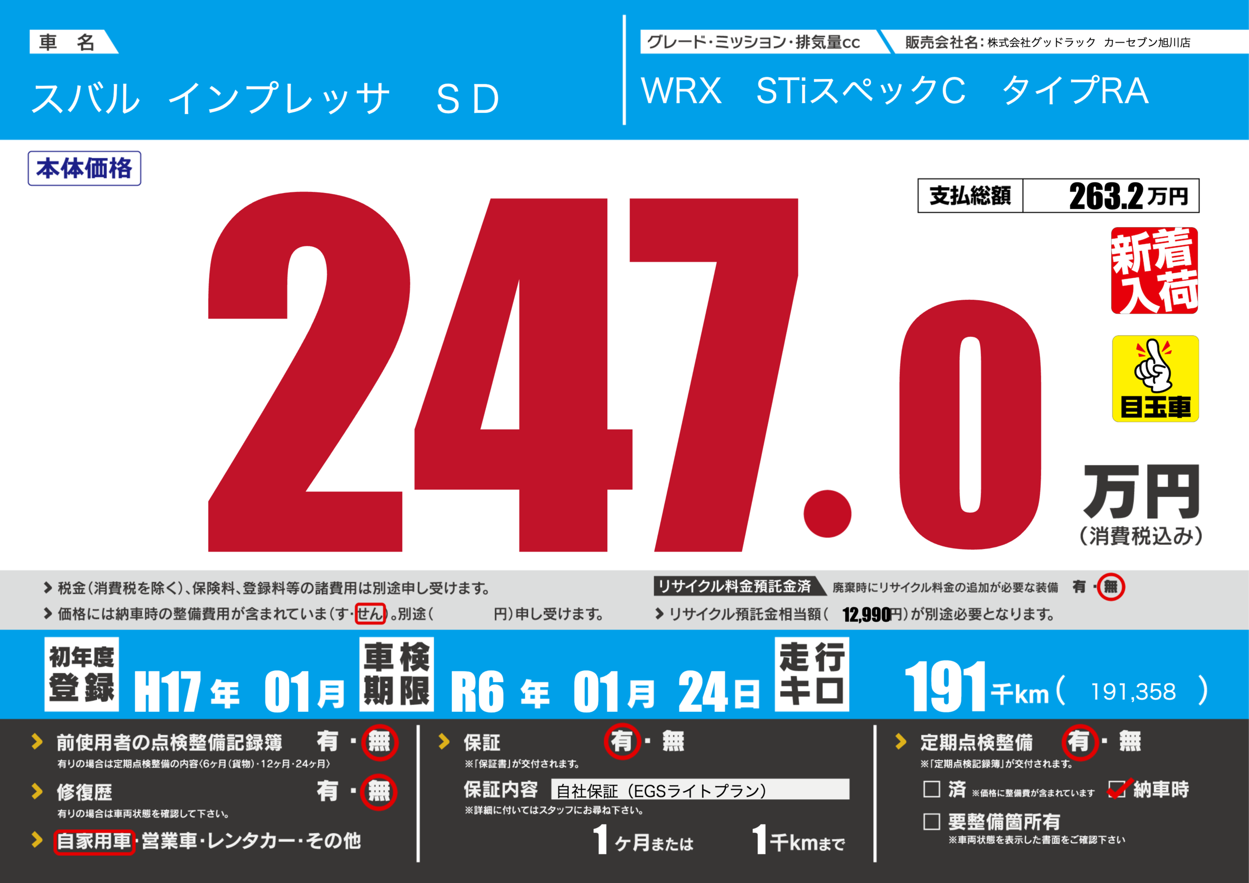 | 車検制限 | R6年 01月 24日 | ||