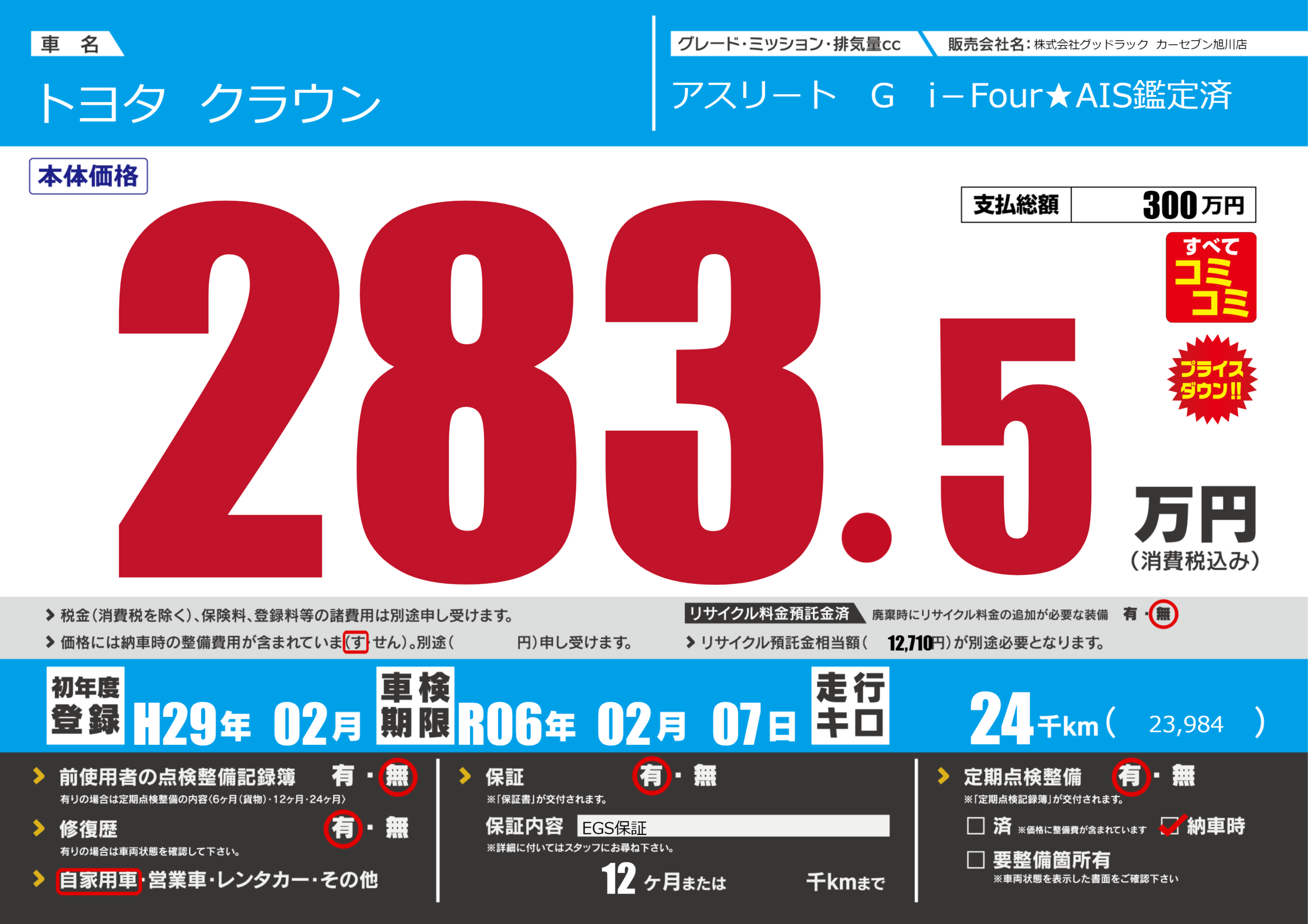 | 車名 | トヨタ クラウン | グレード ミッション 排気量 |