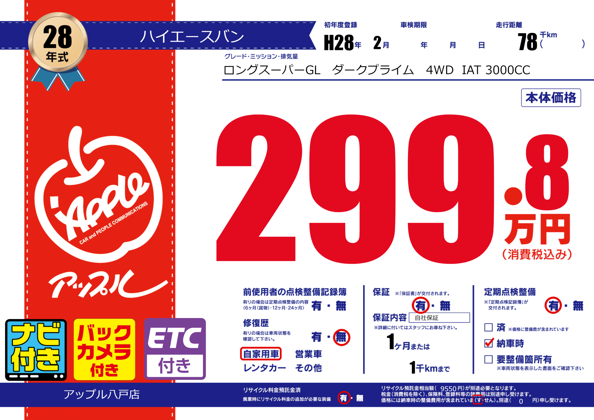 | 走行キロ | 7.8万km | 初年度登録 | H28年2月 |