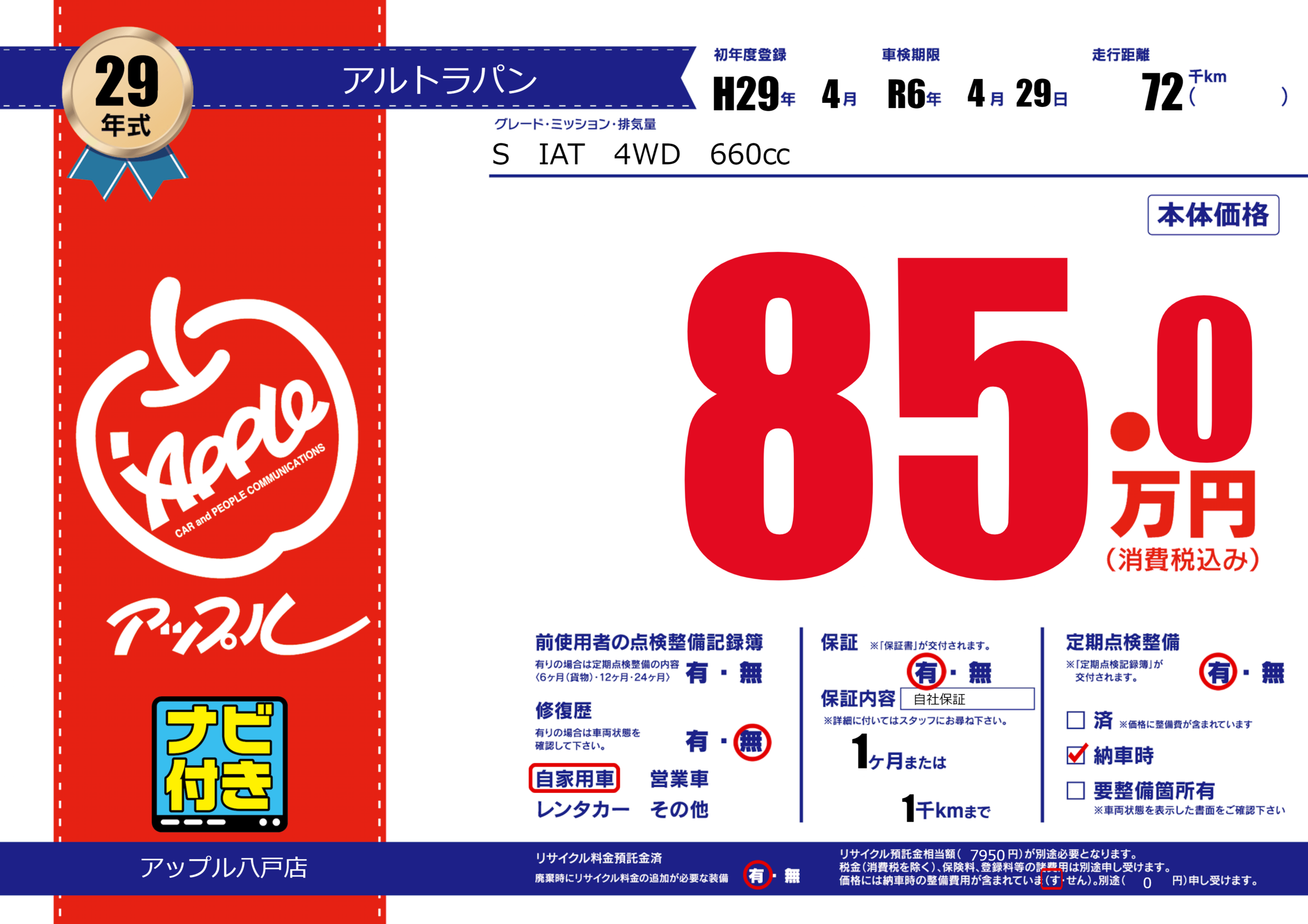 あり | 車検制限 | R6年4月29月 |