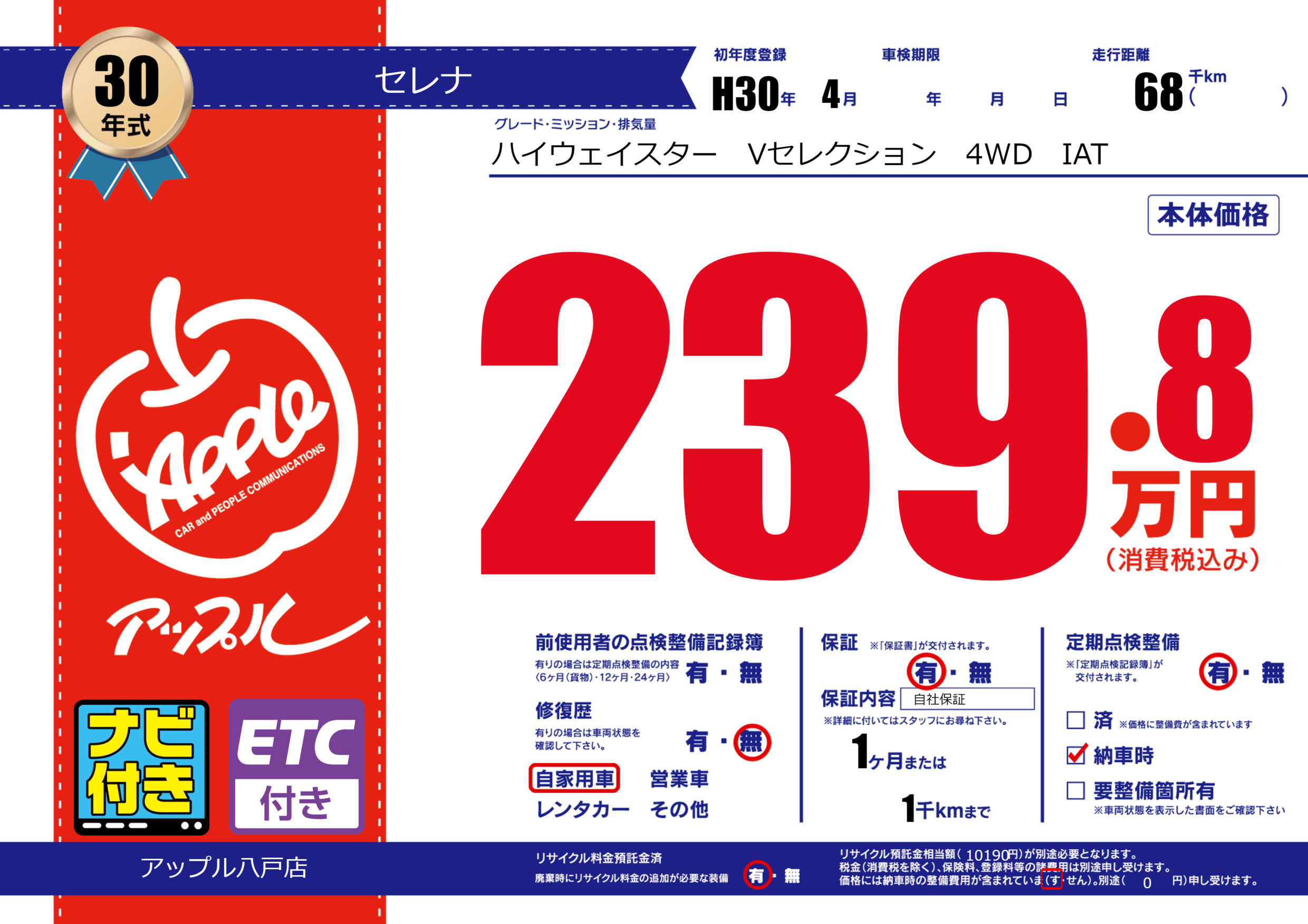 | 走行キロ | 6.8万km | 初年度登録 | H30年4月 |