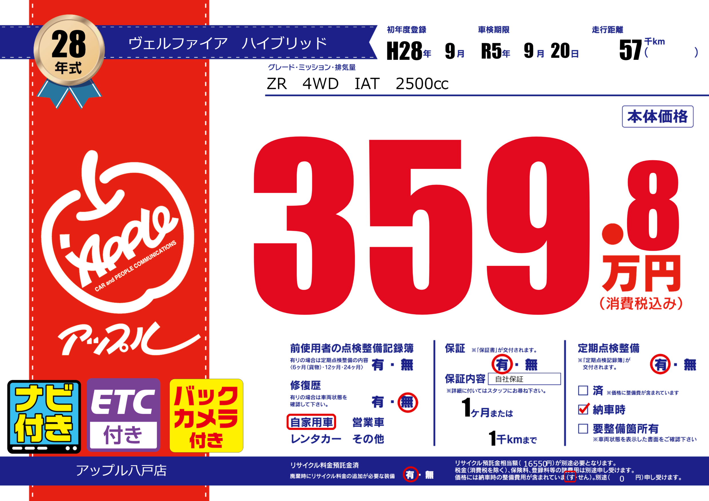 | 車名 | ヴェルファイア ハイブリッド | グレード ミッション 排気量 |