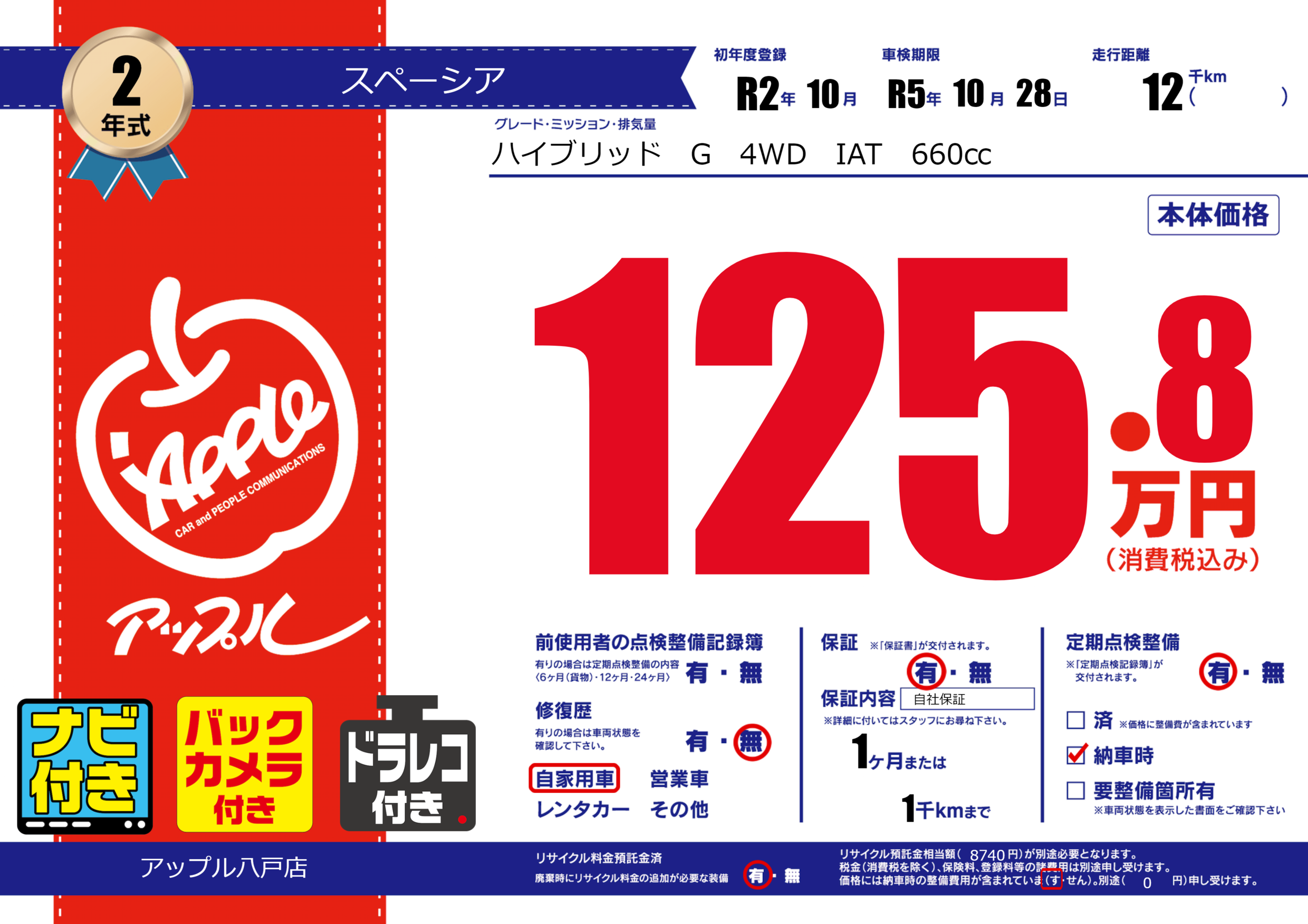 あり | 車検制限 | R5年10月28月 |