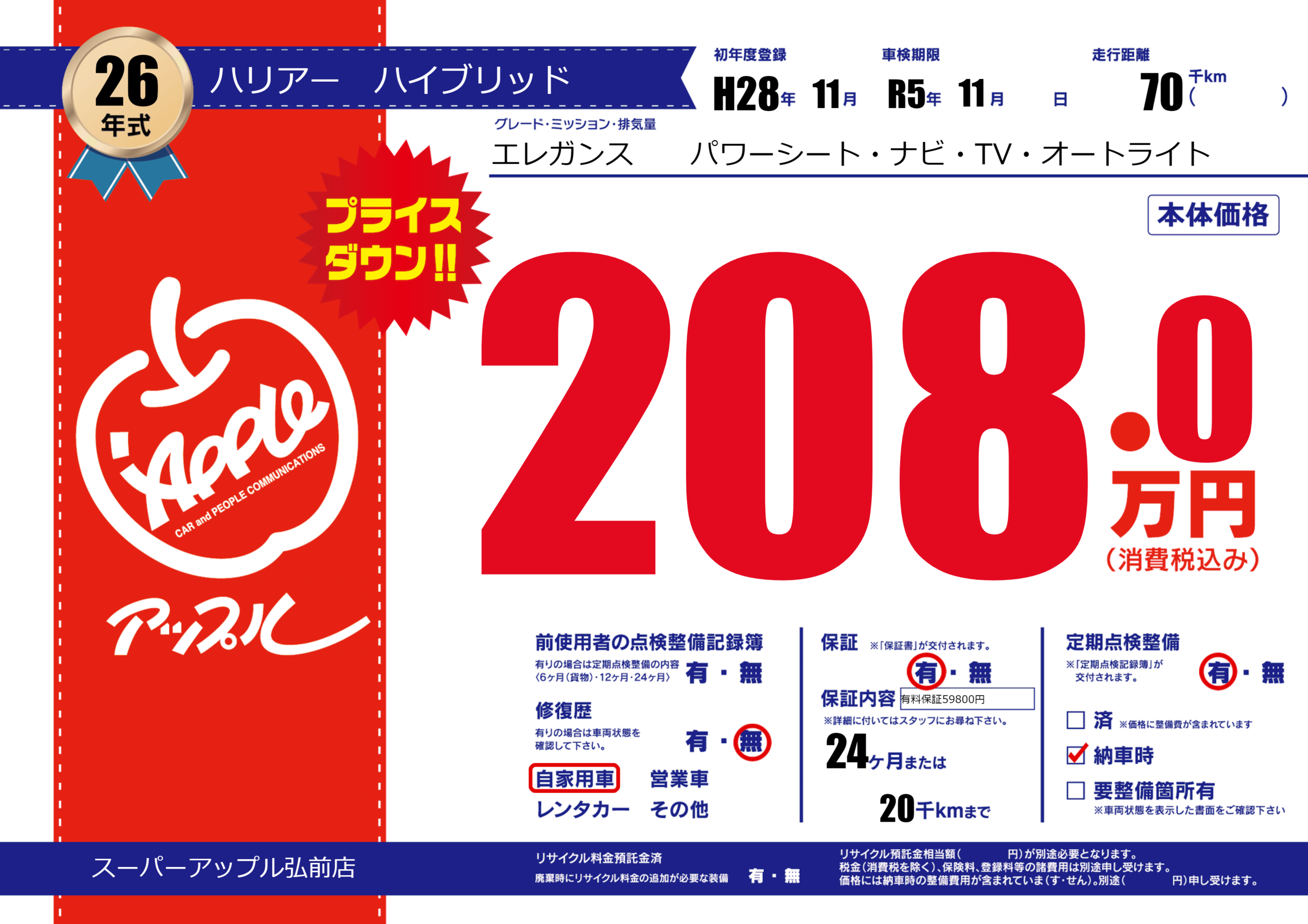 | 走行キロ | 7万km | 初年度登録 | H28年11月 |
