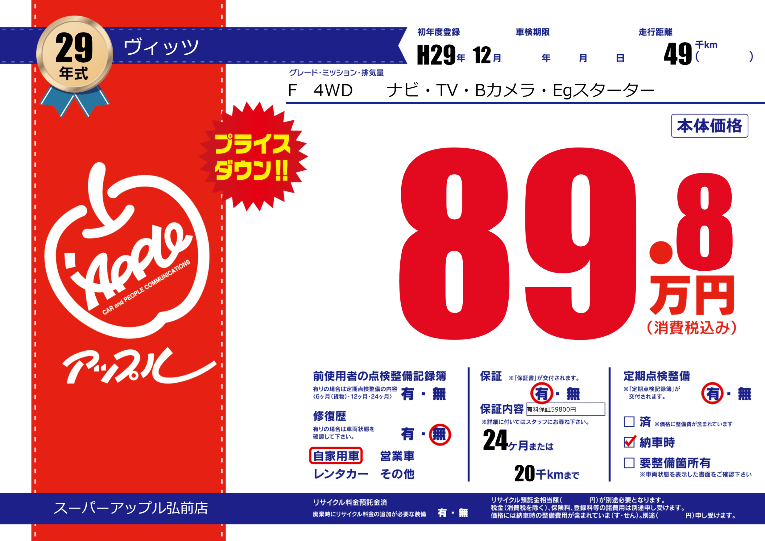| 走行キロ | 4.9万km | 初年度登録 | H29年12月 |