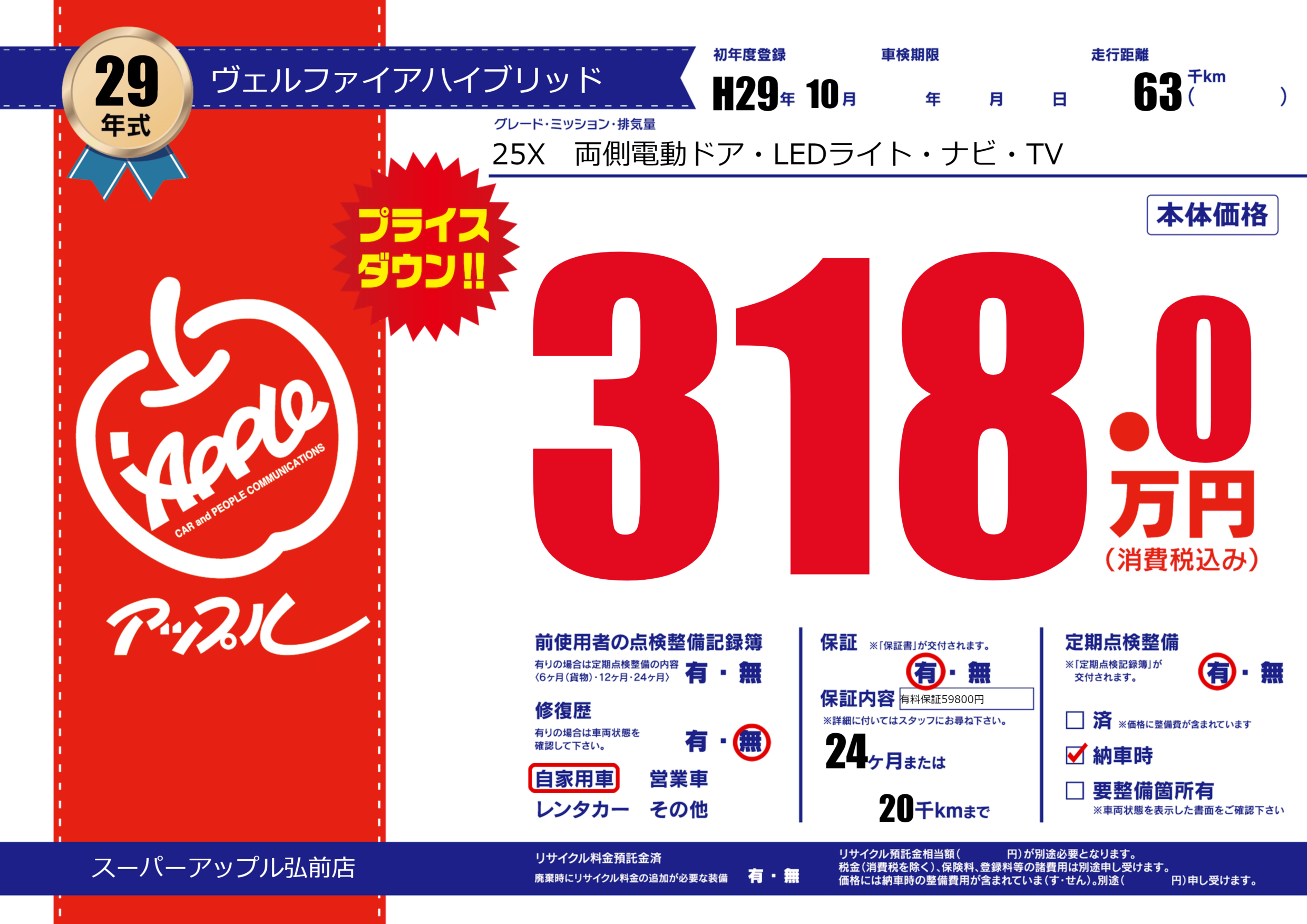 | 走行キロ | 6.3万km | 初年度登録 | H29年10月 |