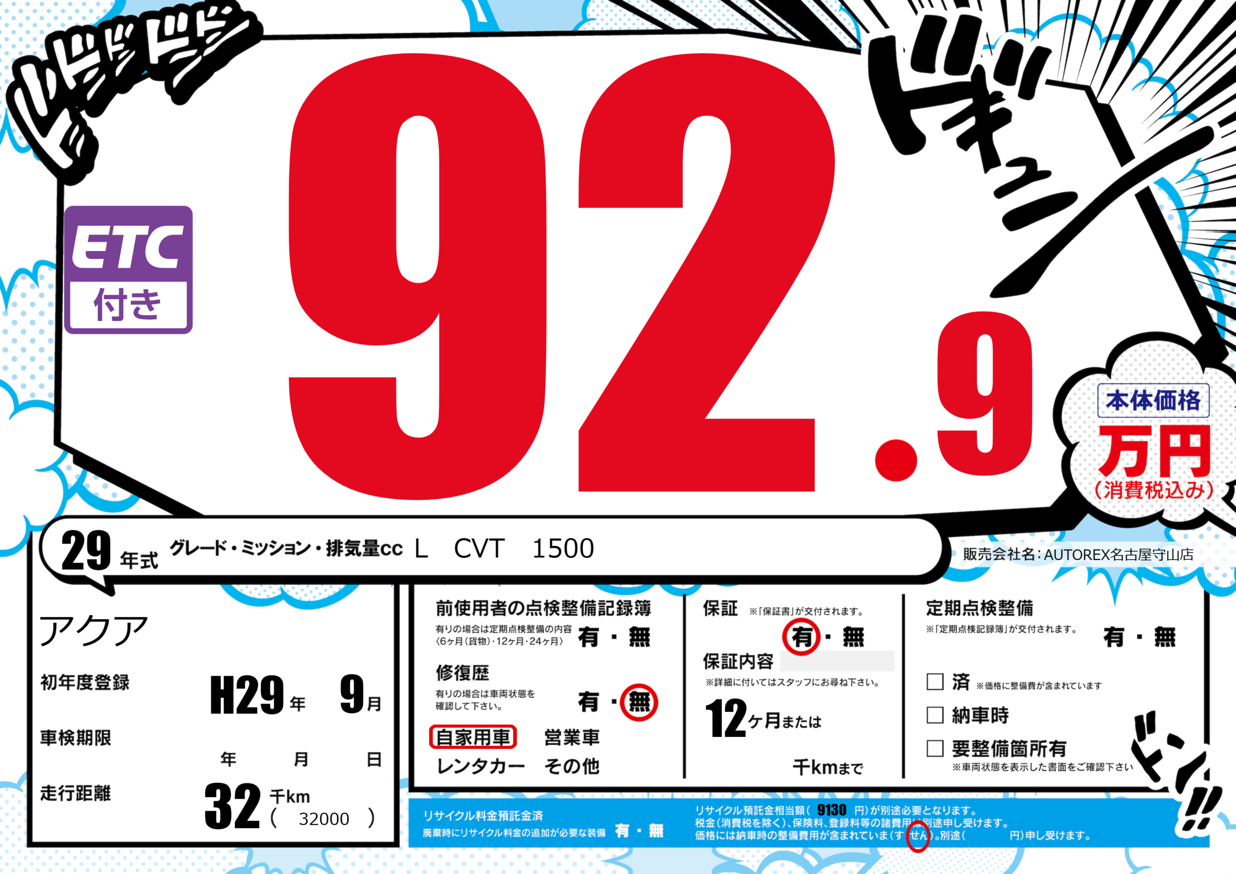 保証付き 保証内容(---) 12ヶ月または()千kmまで |