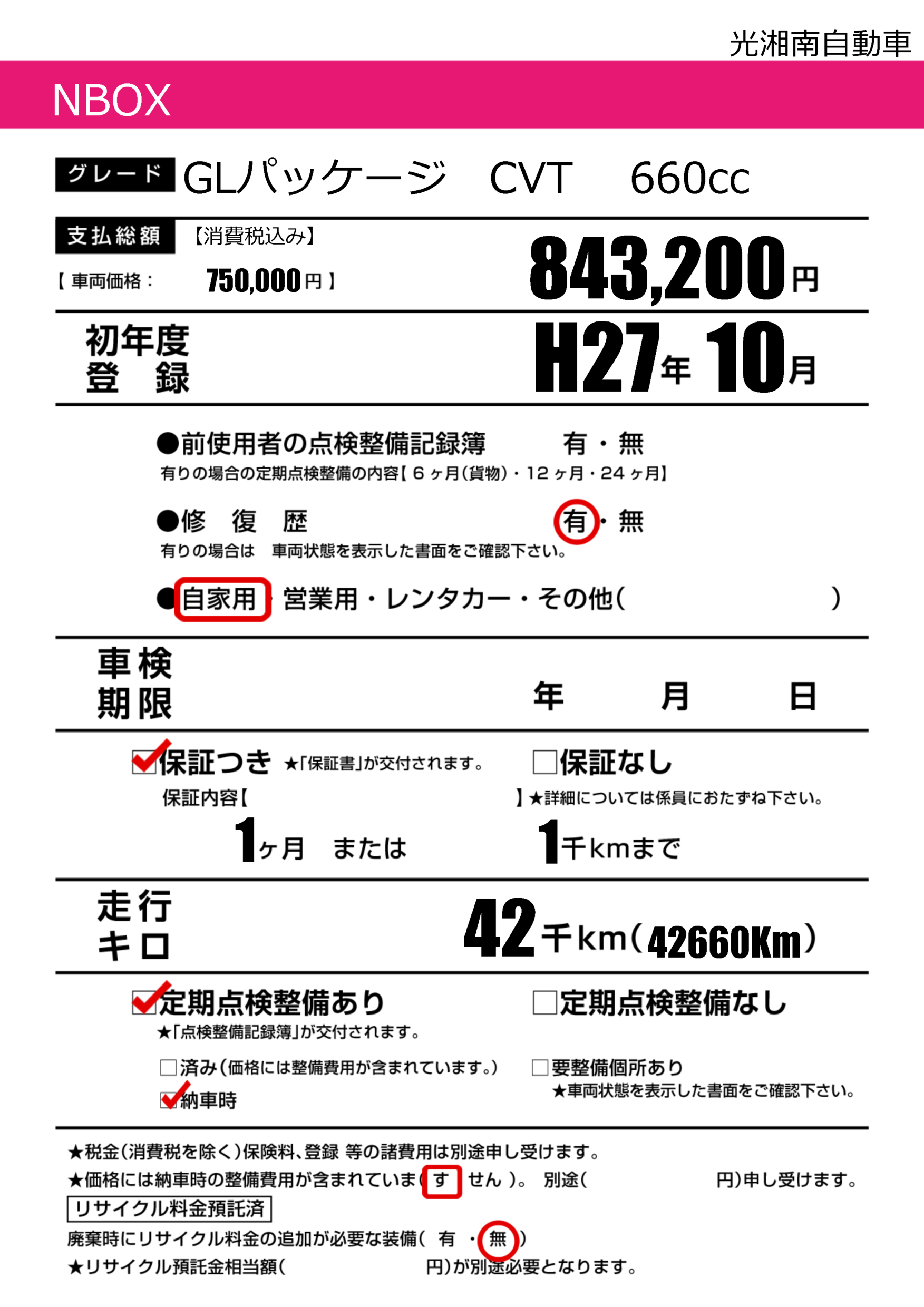 | 車名 | NBOX | グレード ミッション 排気量 |
