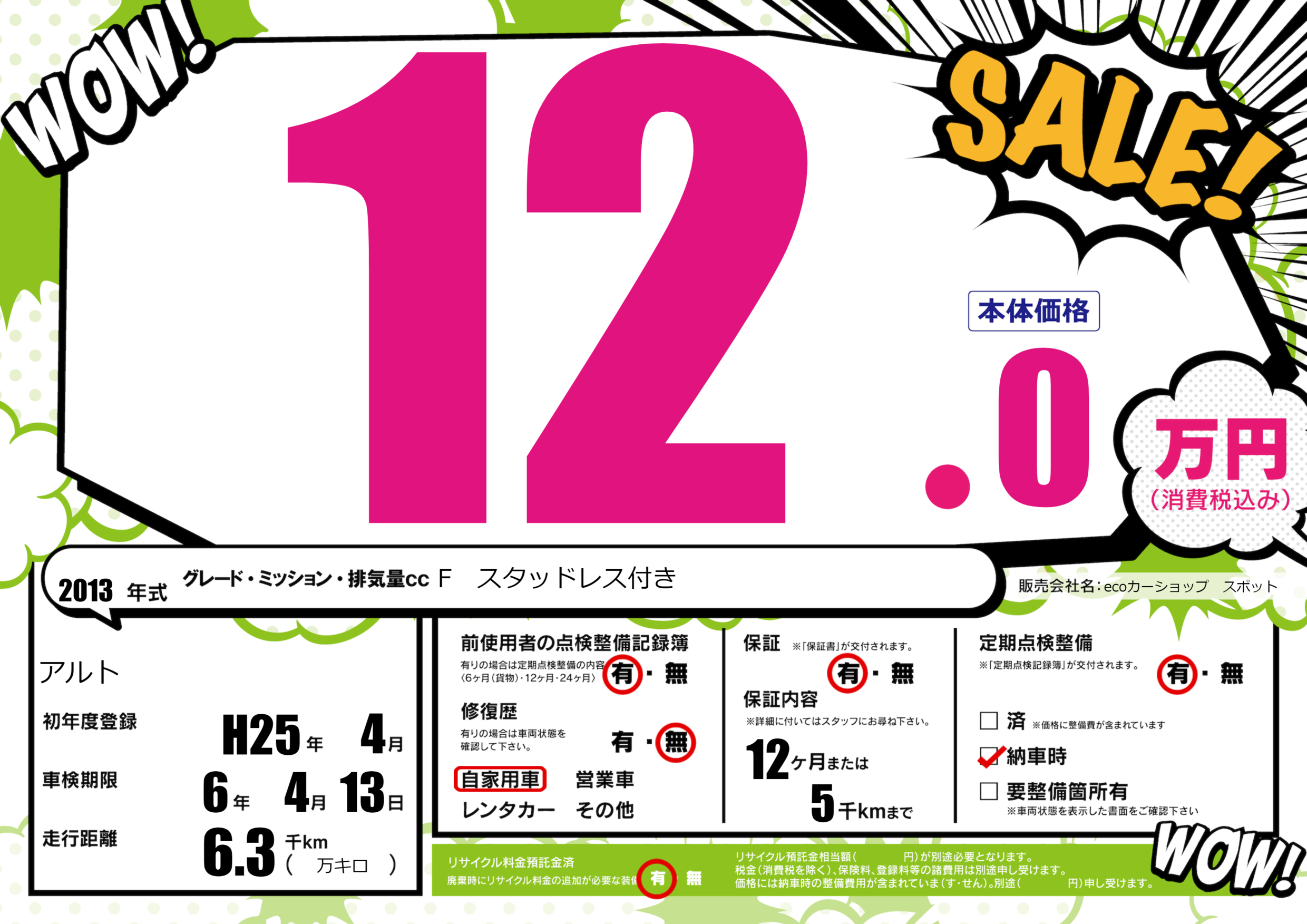 保証付き 保証内容(---) 12ヶ月または(5)千kmまで |