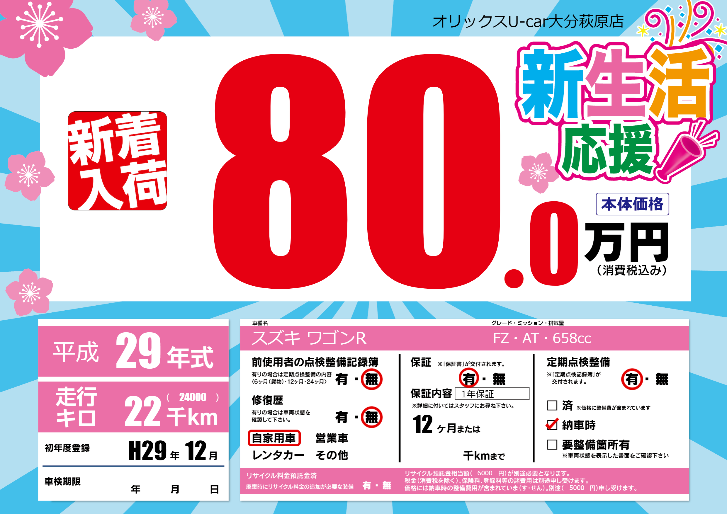 保証付き 保証内容(1年保証) 12ヶ月または()千kmまで |