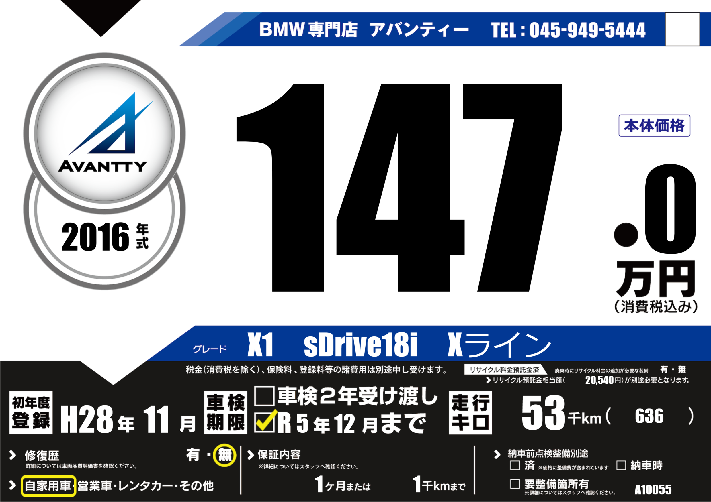 | 走行キロ | 5.3万km | 初年度登録 | H28年11月 |