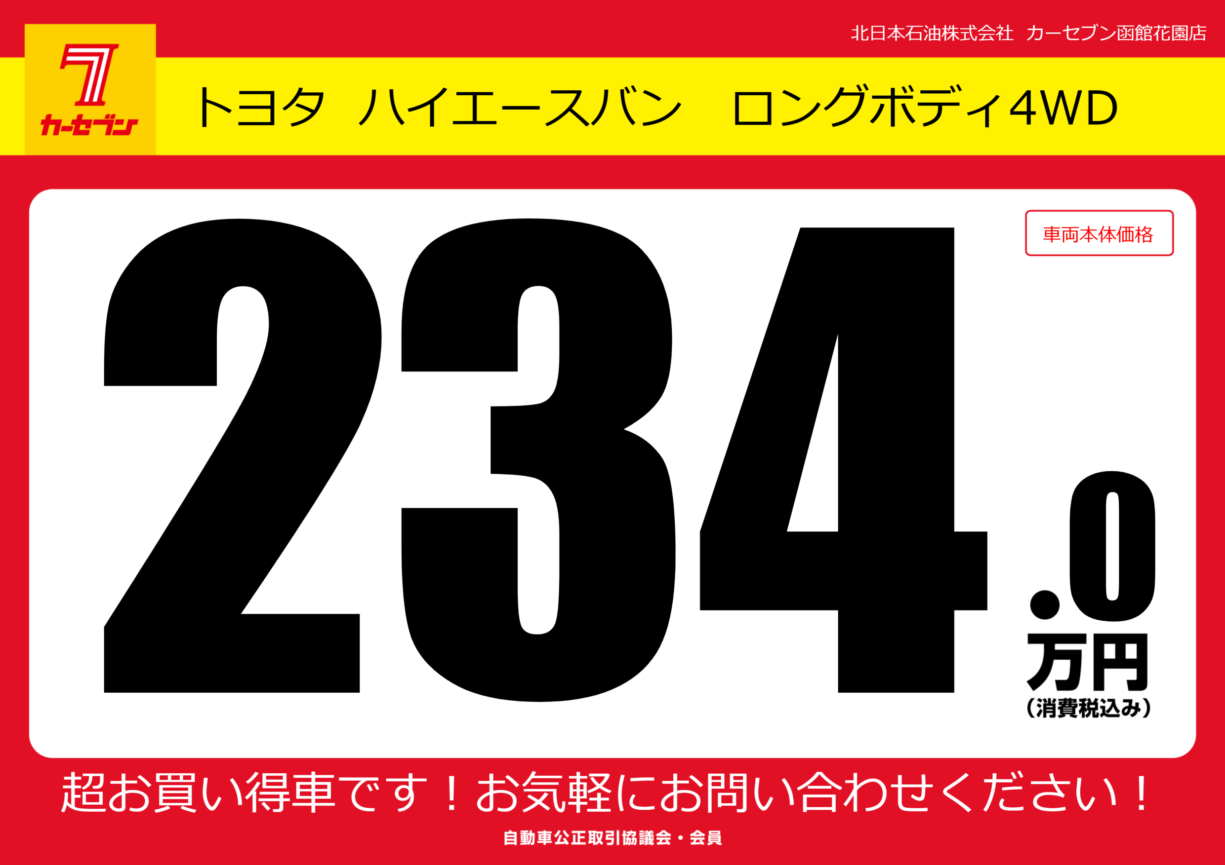 | 車名 | トヨタ ハイエースバン ロングボディ4WD | グレード ミッション 排気量 |