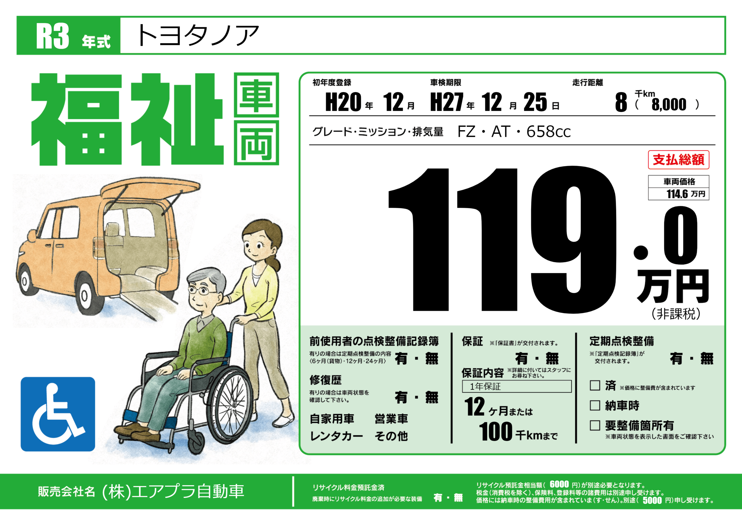 保証なし 保証内容(1年保証) 12ヶ月または(100)千kmまで |
