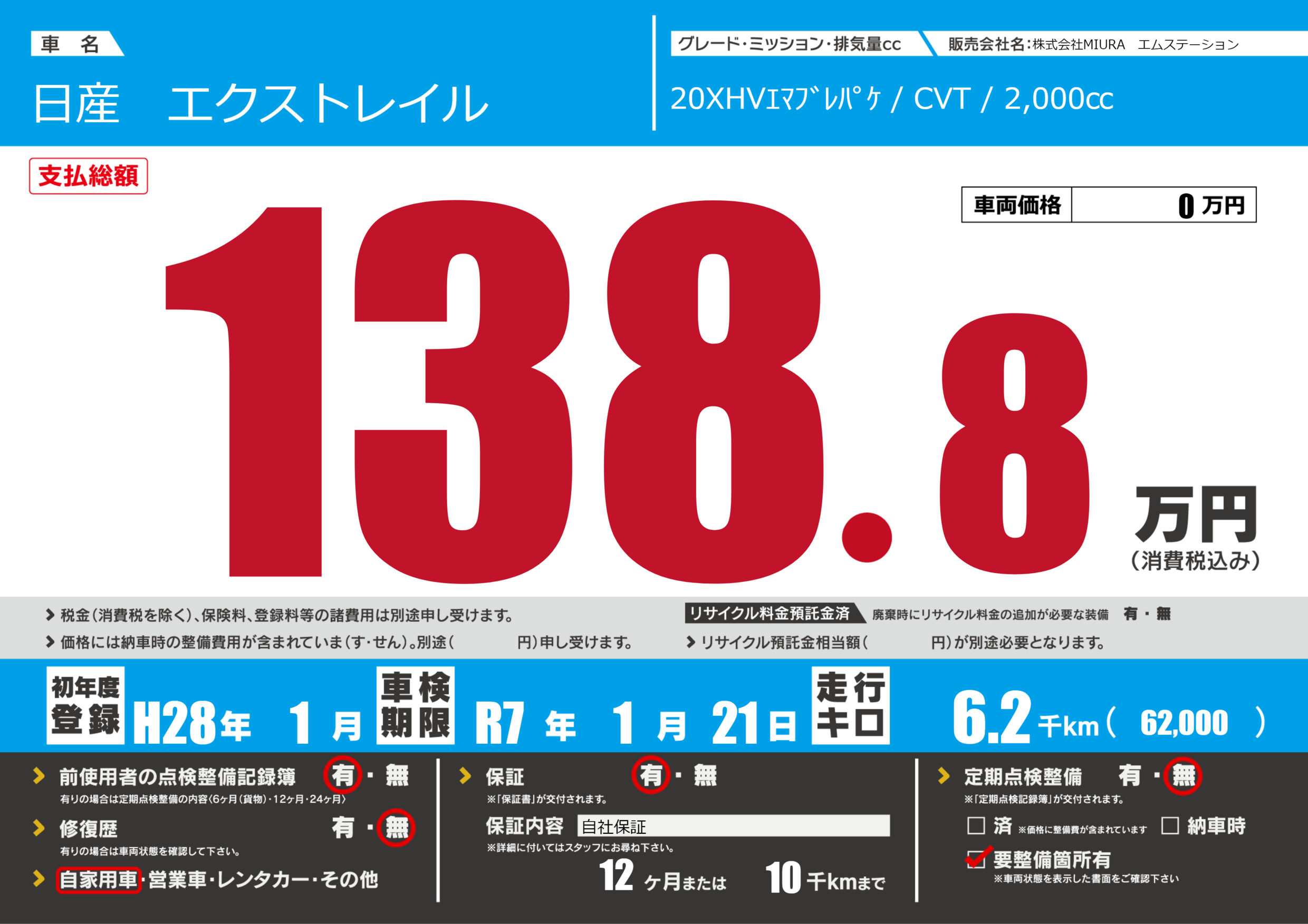 なし | 車検制限 | R7年1月21月 |