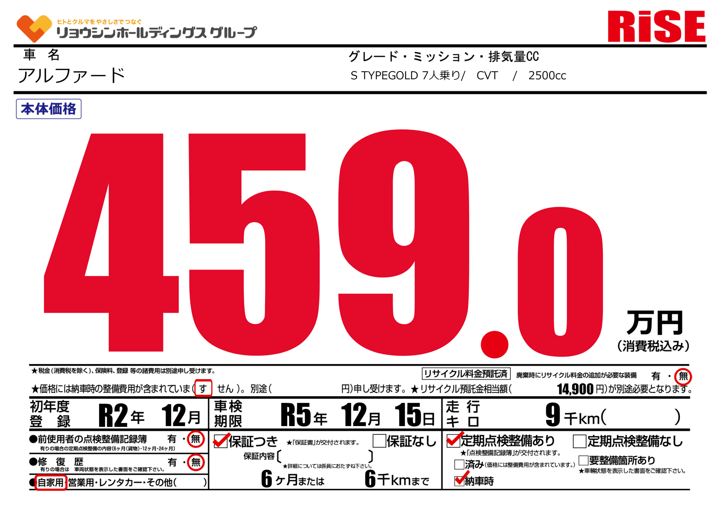 | 車名 | アルファード | グレード ミッション 排気量 |