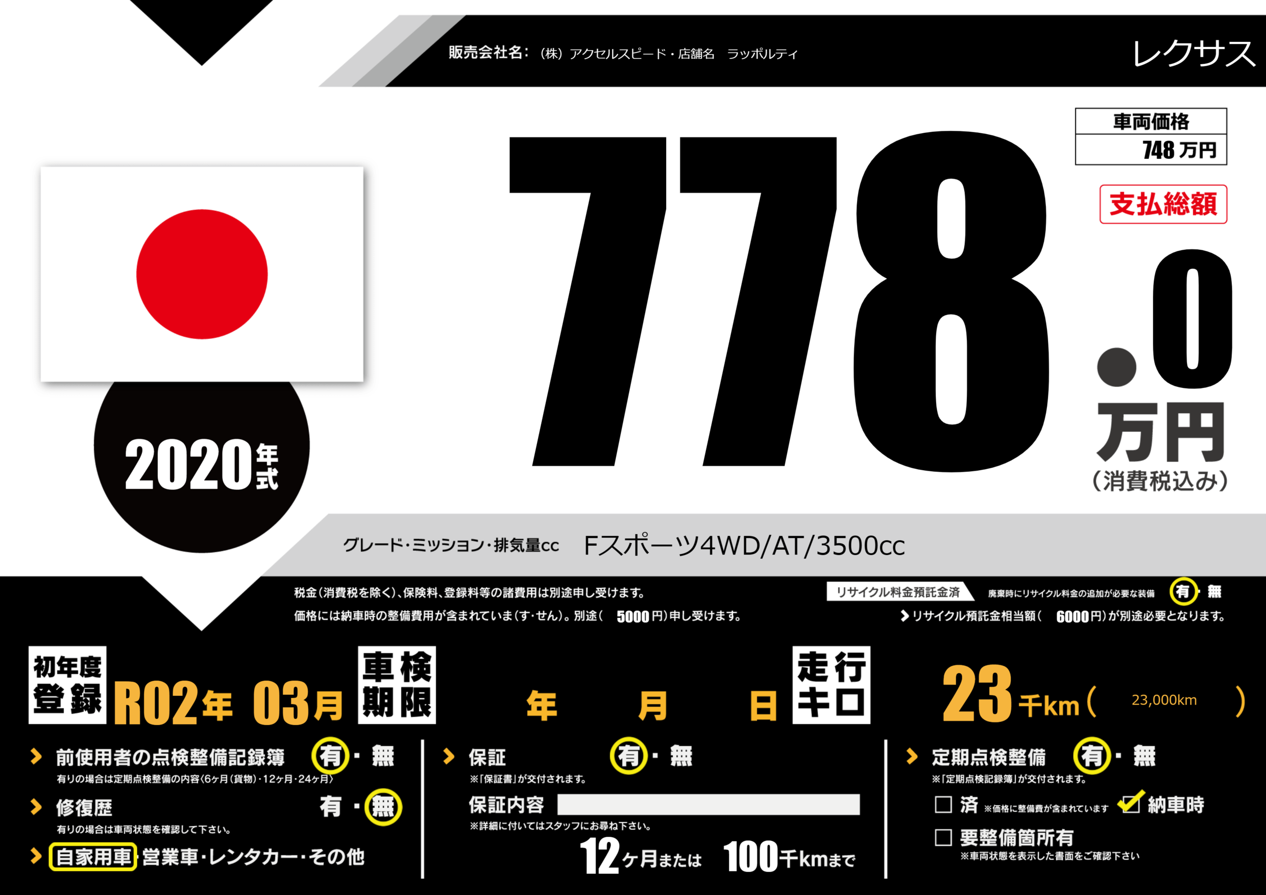 | 車名 | レクサス | グレード ミッション 排気量 |