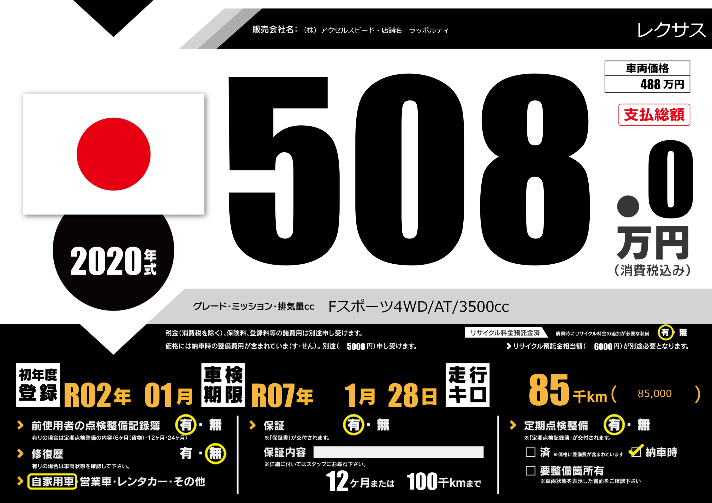 | 車名 | レクサス | グレード ミッション 排気量 |