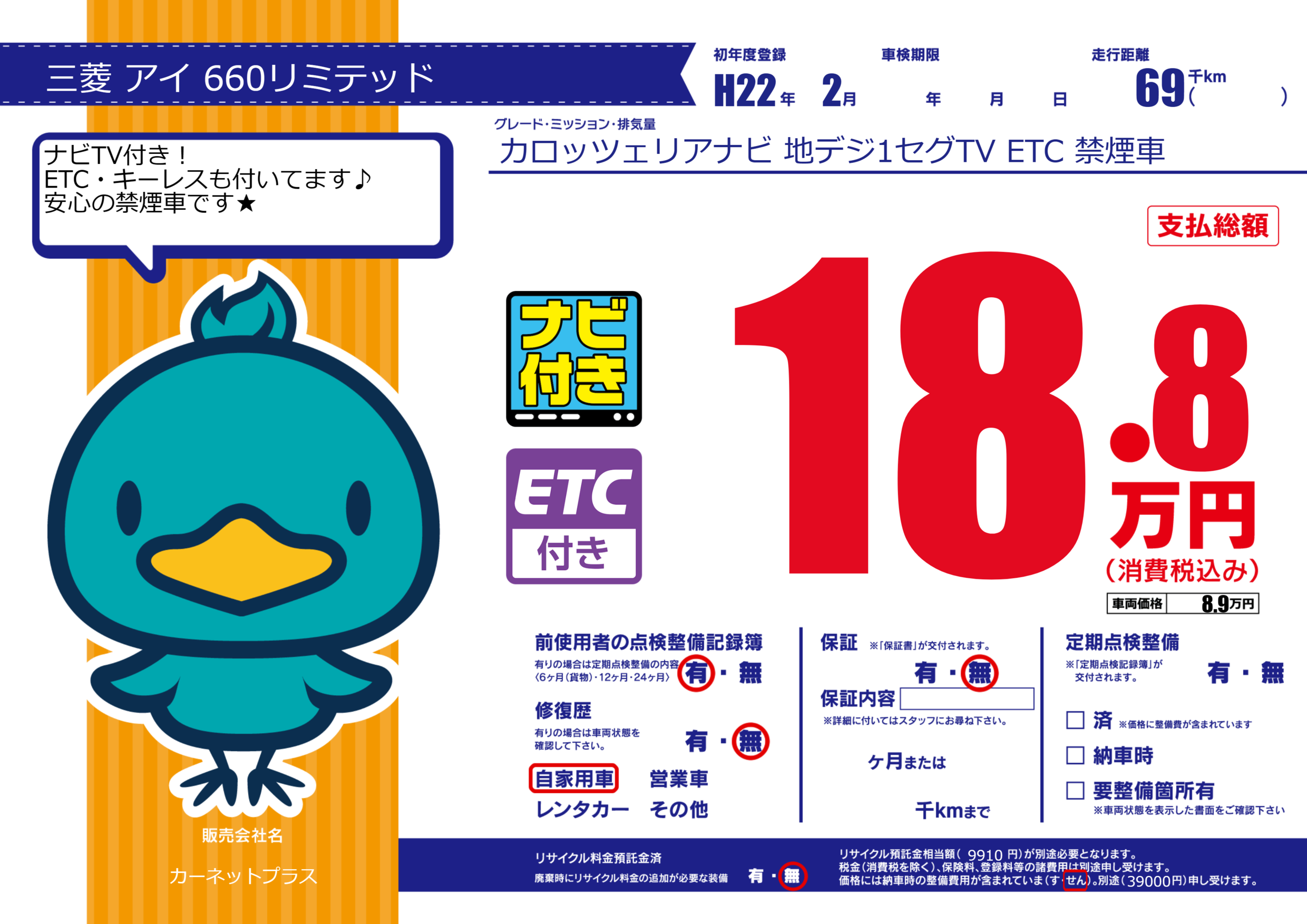 | 車名 | 三菱 アイ 660リミテッド | グレード ミッション 排気量 |