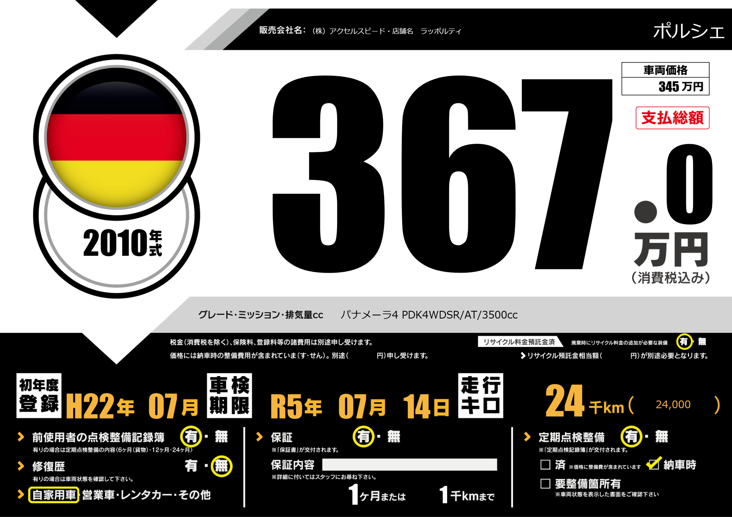 パナメーラ4 PDK4WDSR/AT/3500cc |