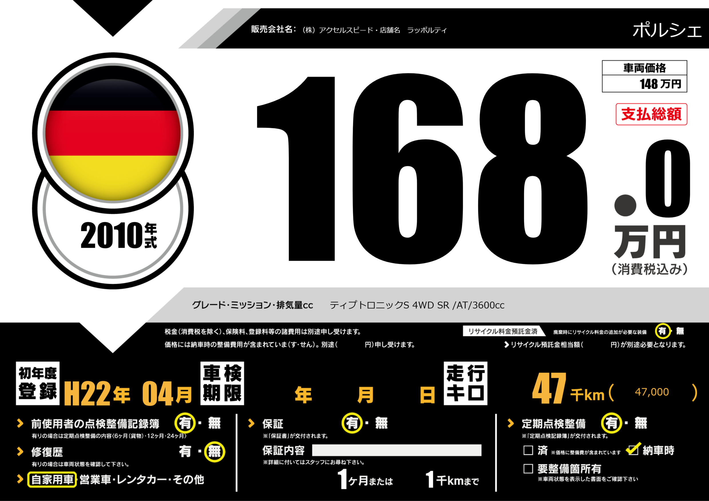 | 車名 | ポルシェ | グレード ミッション 排気量 |