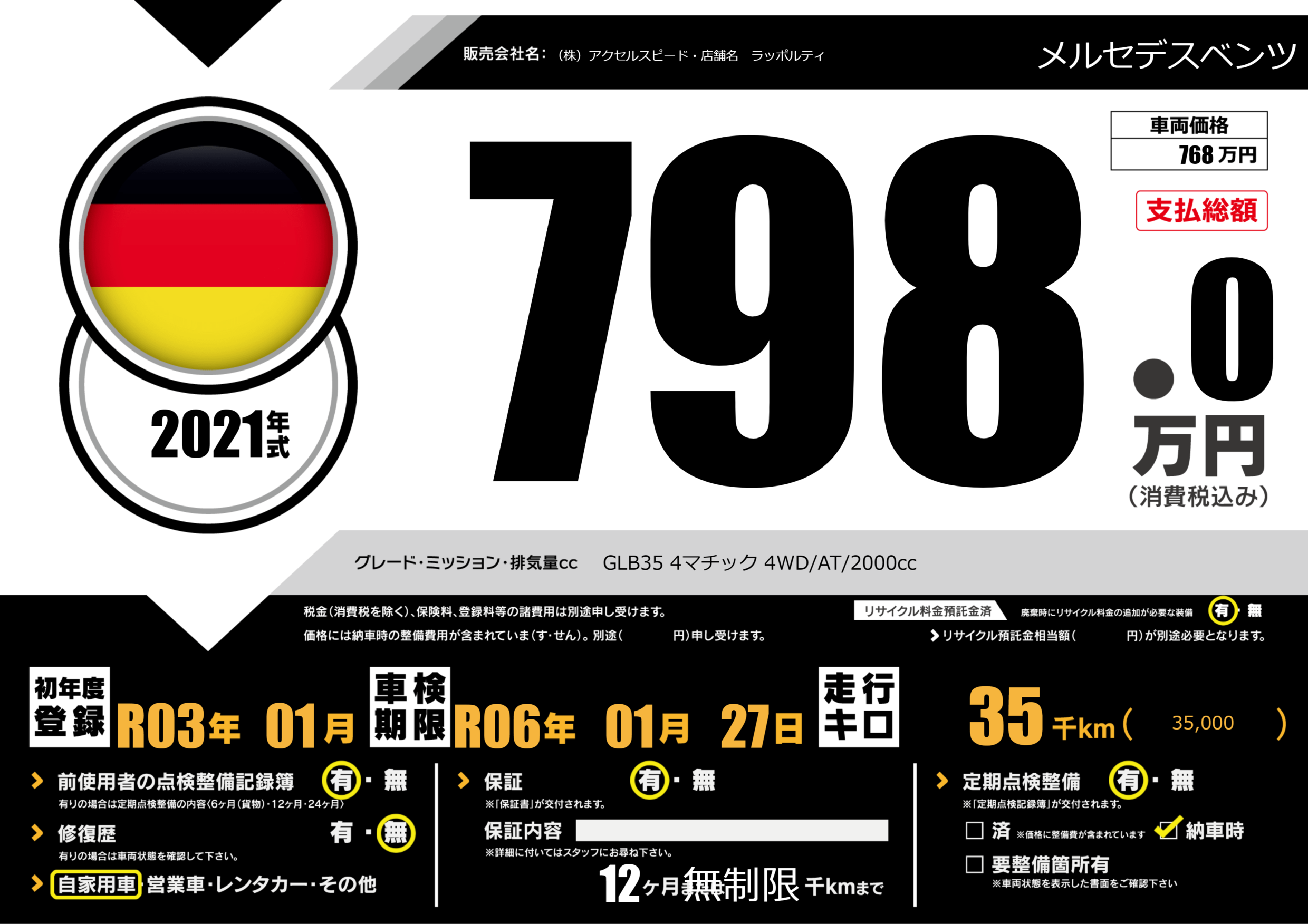 GLB35 4マチック 4WD/AT/2000cc |