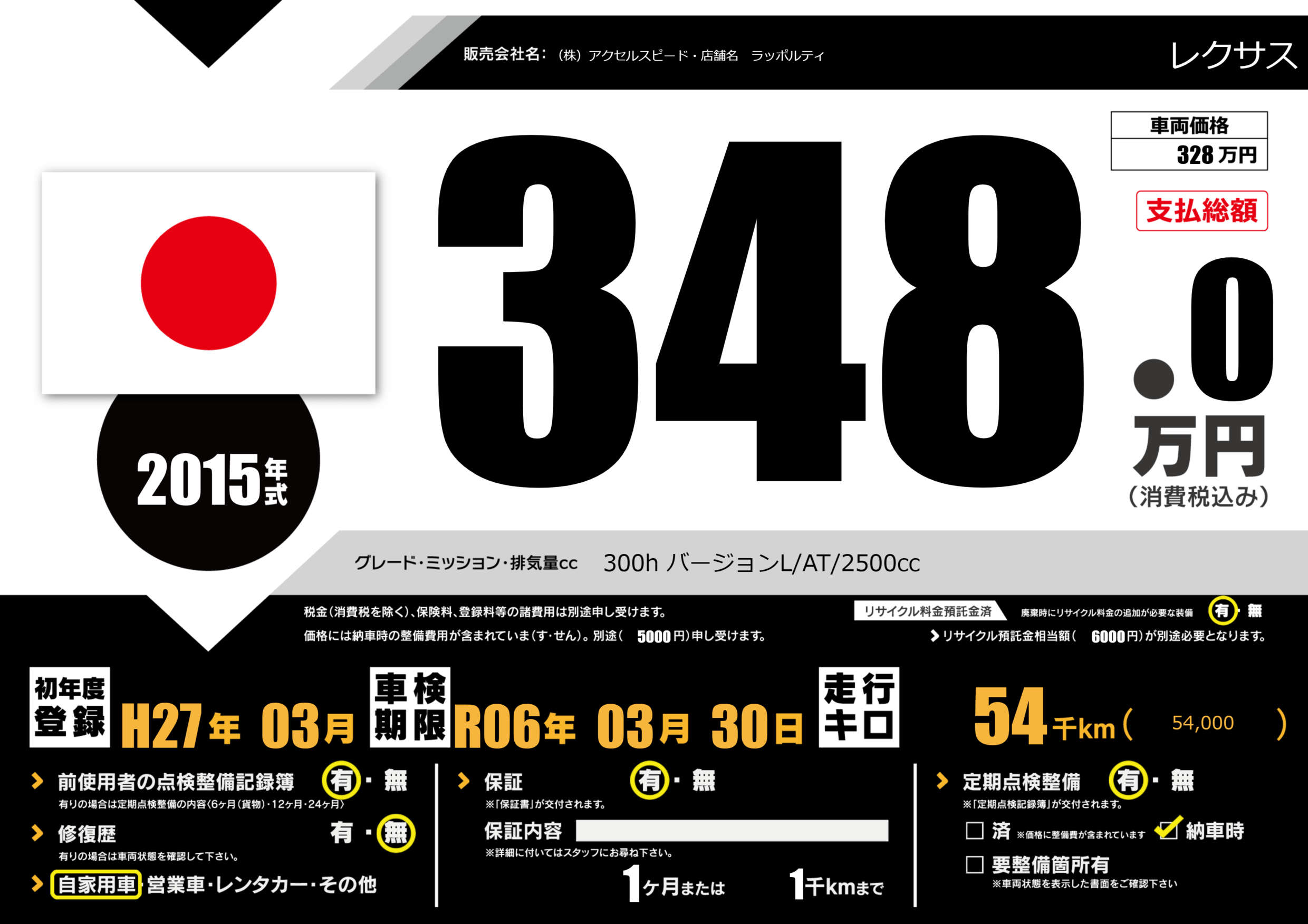 | 車検制限 | R06年 03月 30日 | ||
