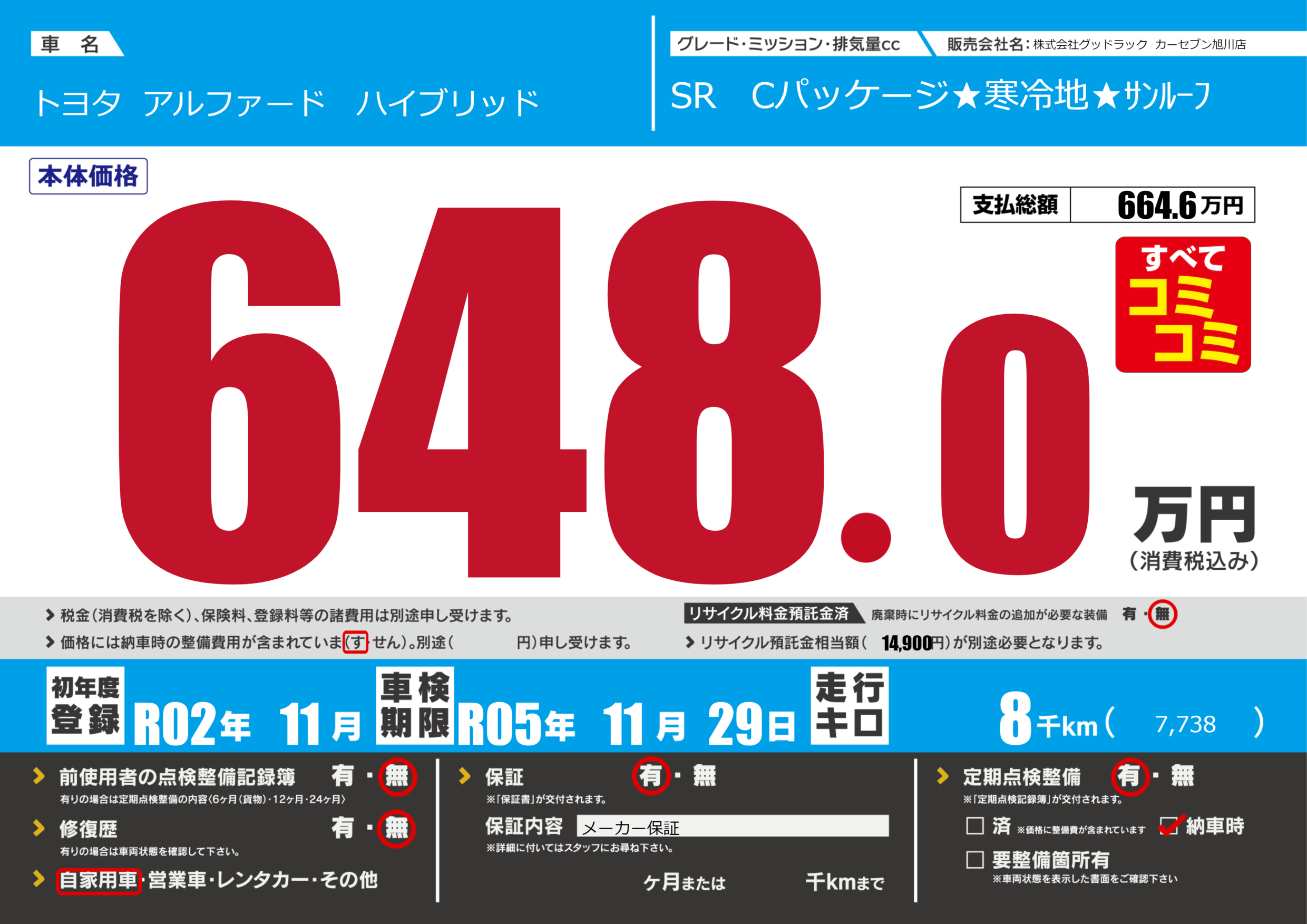 | 車名 | トヨタ アルファード ハイブリッド | グレード ミッション 排気量 |