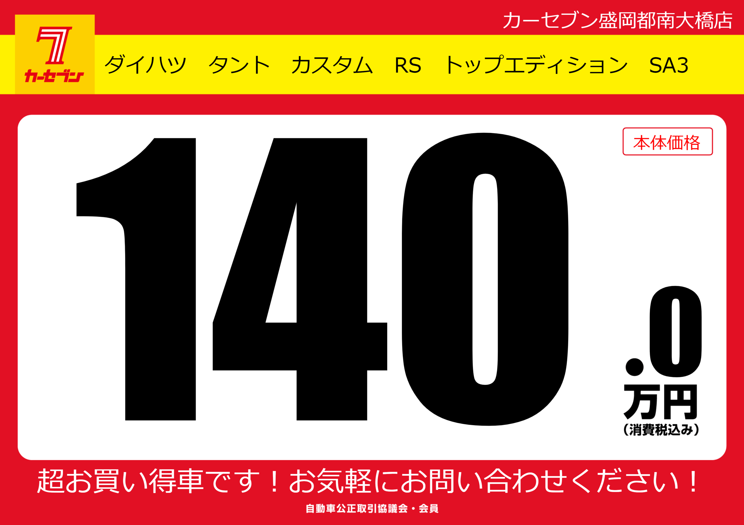 | 車名 | ダイハツ タント カスタム RS トップエディション SA3 | グレード ミッション 排気量 |