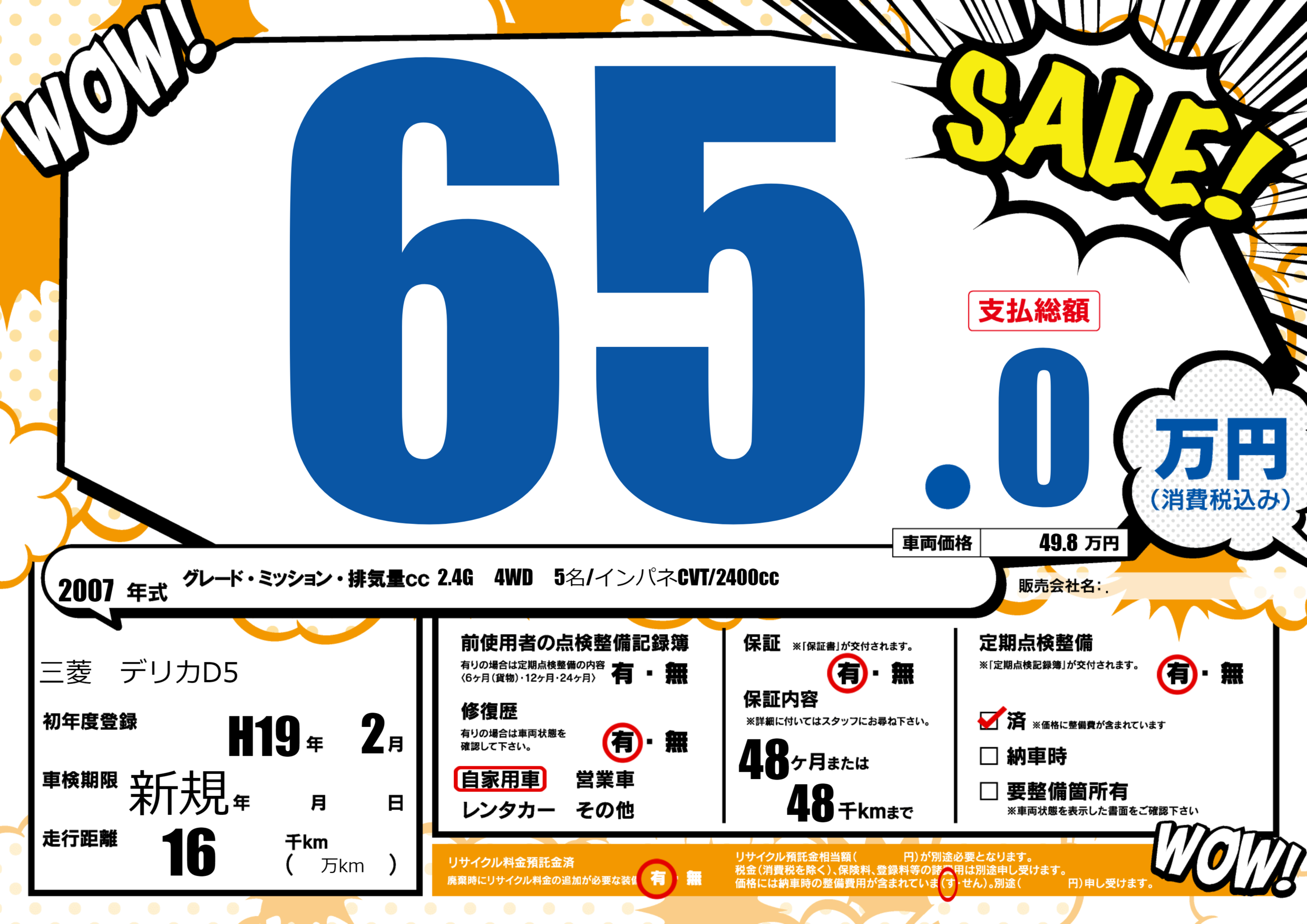 | 定期点検整備 | 定期点検整備あり 定期点検整備済み | ||