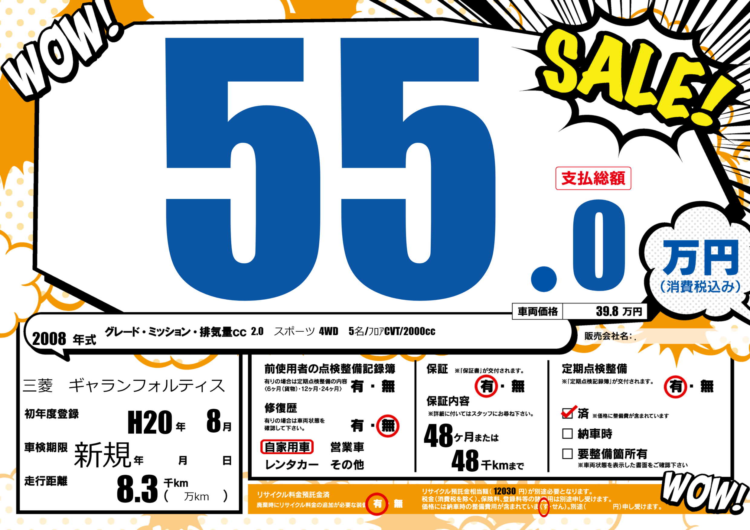 | 定期点検整備 | 定期点検整備あり 定期点検整備済み | ||