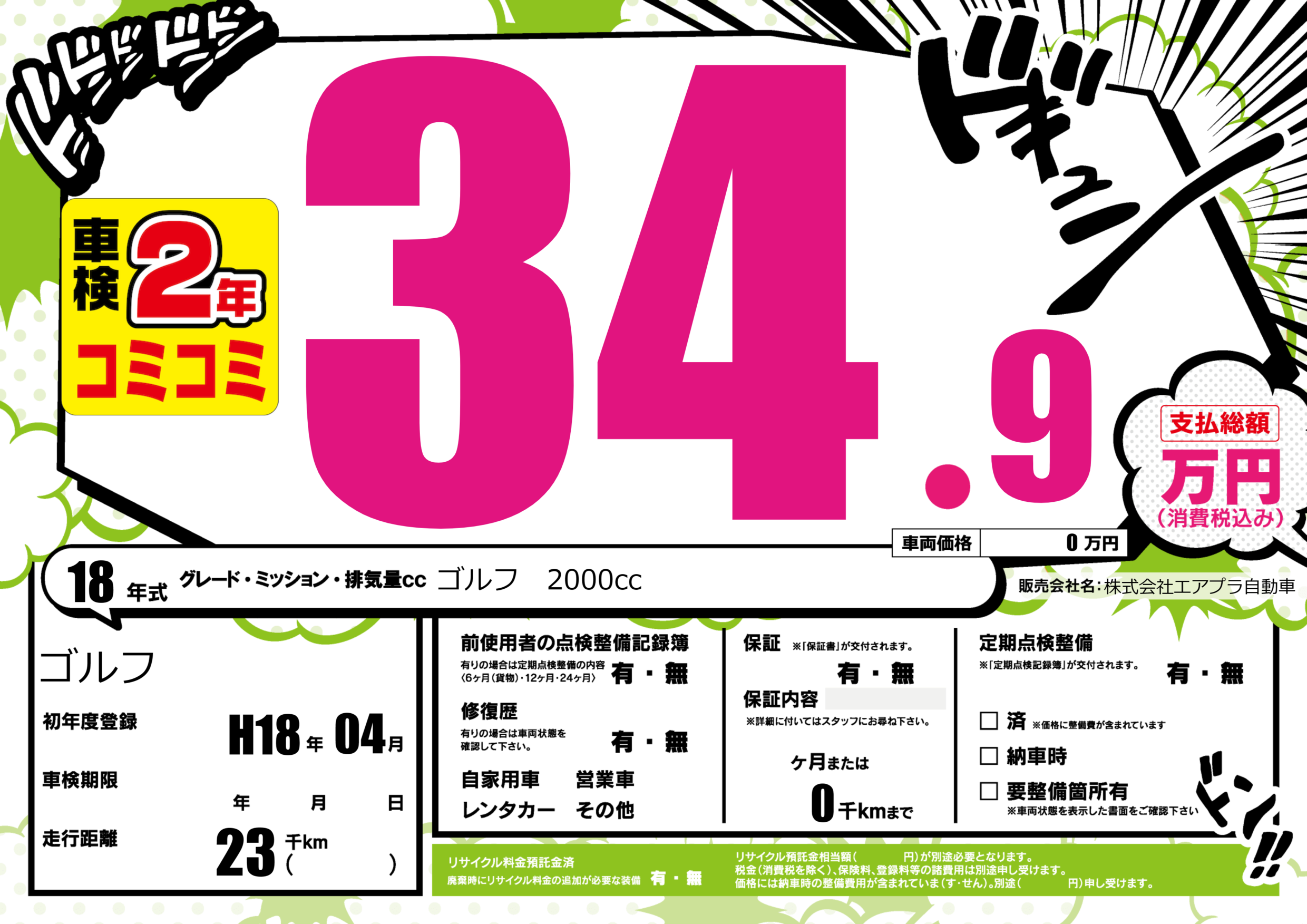 | 車名 | ゴルフ | グレード ミッション 排気量 |