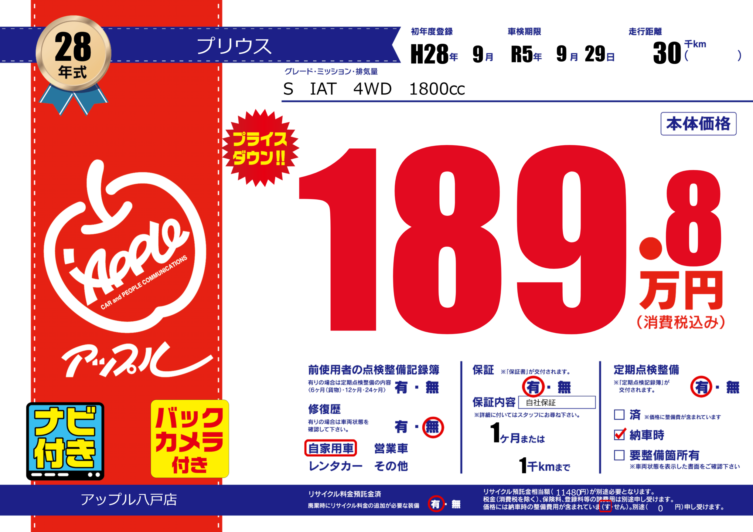 | 車名 | プリウス | グレード ミッション 排気量 |