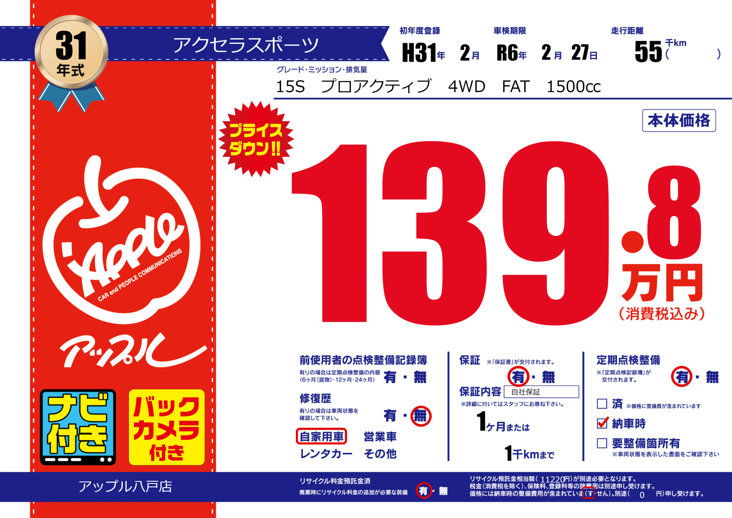 | 車名 | アクセラスポーツ | グレード ミッション 排気量 |