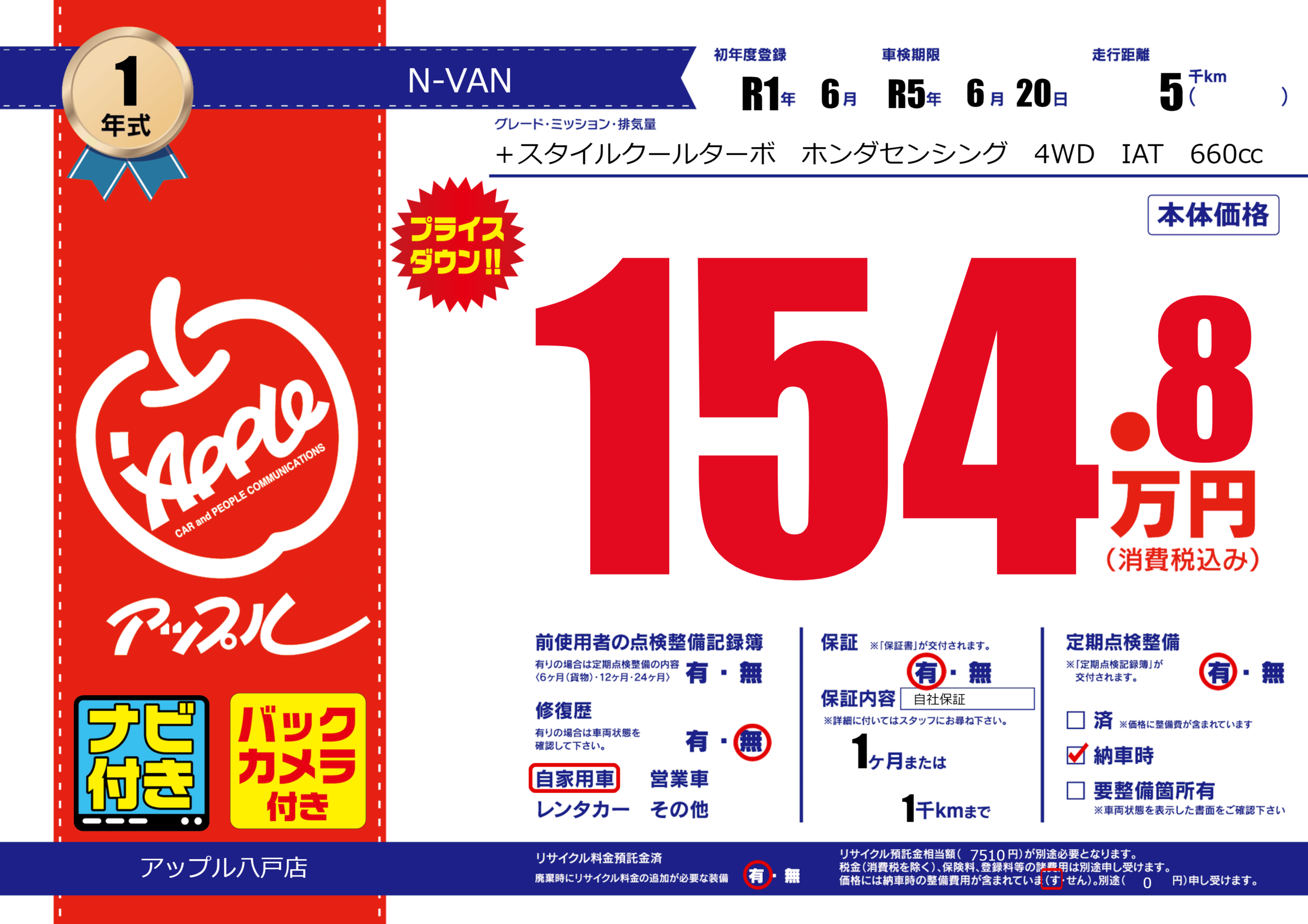 | 車検制限 | R5年 6月 20日 | ||